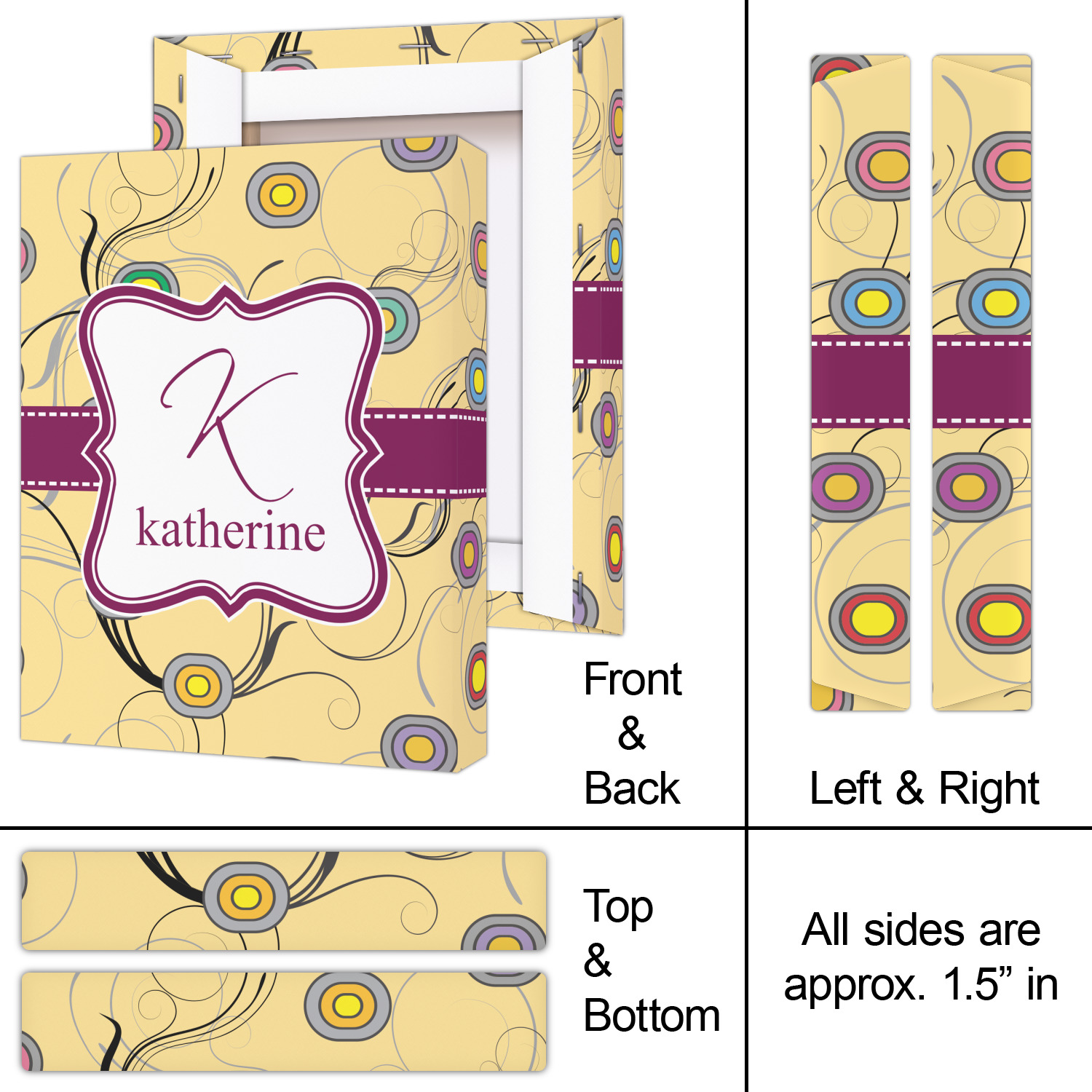Our Ovals and Swirls print is available to you in multiple colors, so customize by selecting the color that works for you. Remember to add the personalization of your choice in the elegant center label!