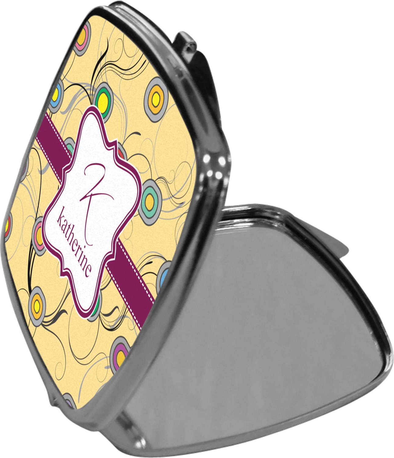 We offer many prints and patterns and many of our patterns are available in 45 different colors. You can personalized the compact mirrors with a name, a monogram or just an initial. We offer several different label, ribbon and font choices. Our customization system lets you create your very own custom & unique product and it lets you preview it before you purchase.