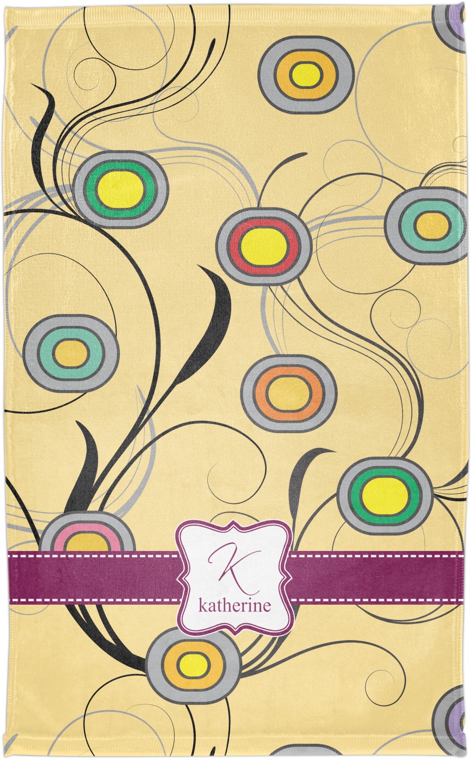 Our Ovals and Swirls print is available to you in multiple colors, so customize by selecting the color that works for you. Remember to add the personalization of your choice in the elegant center label!