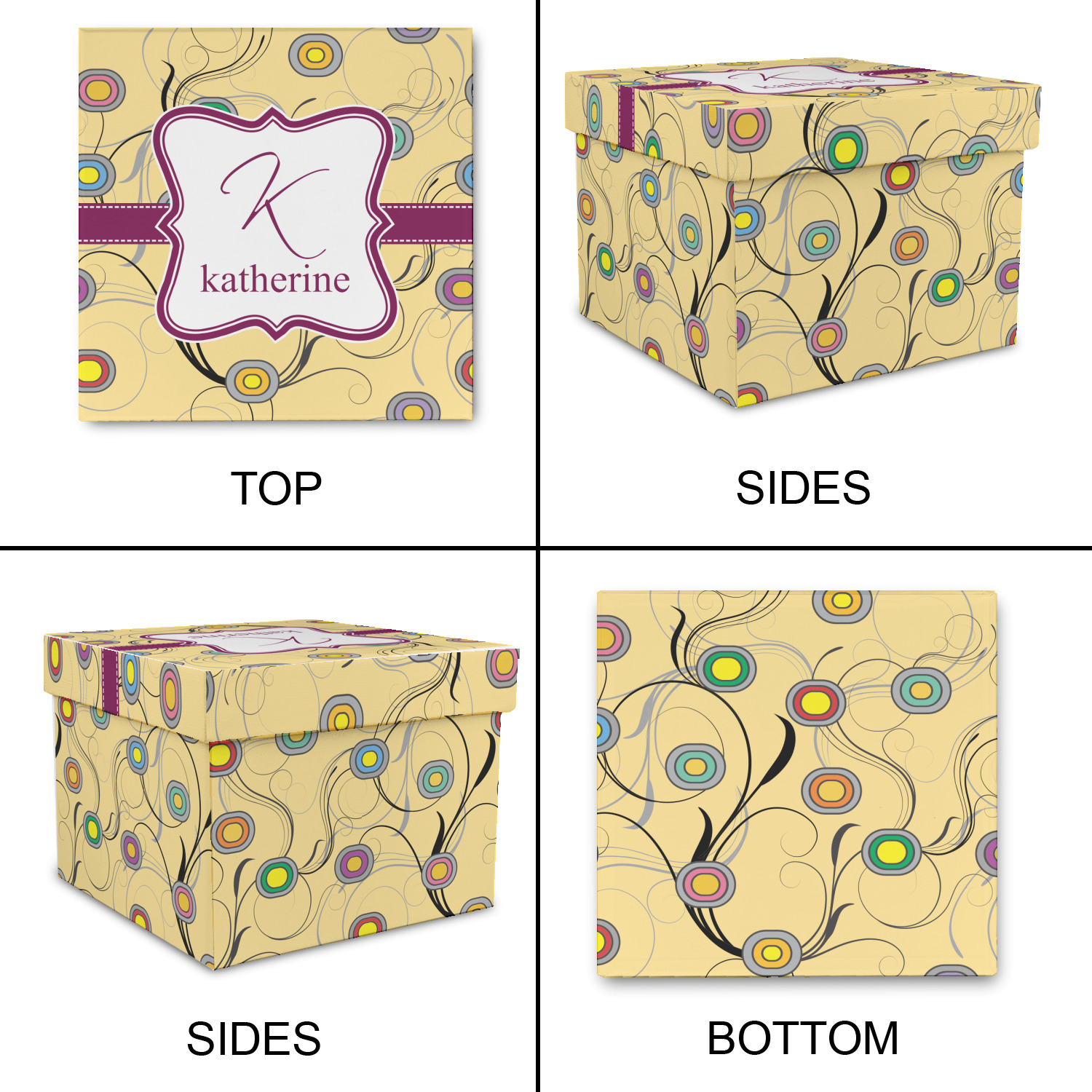 Our Ovals and Swirls print is available to you in multiple colors, so customize by selecting the color that works for you. Remember to add the personalization of your choice in the elegant center label!