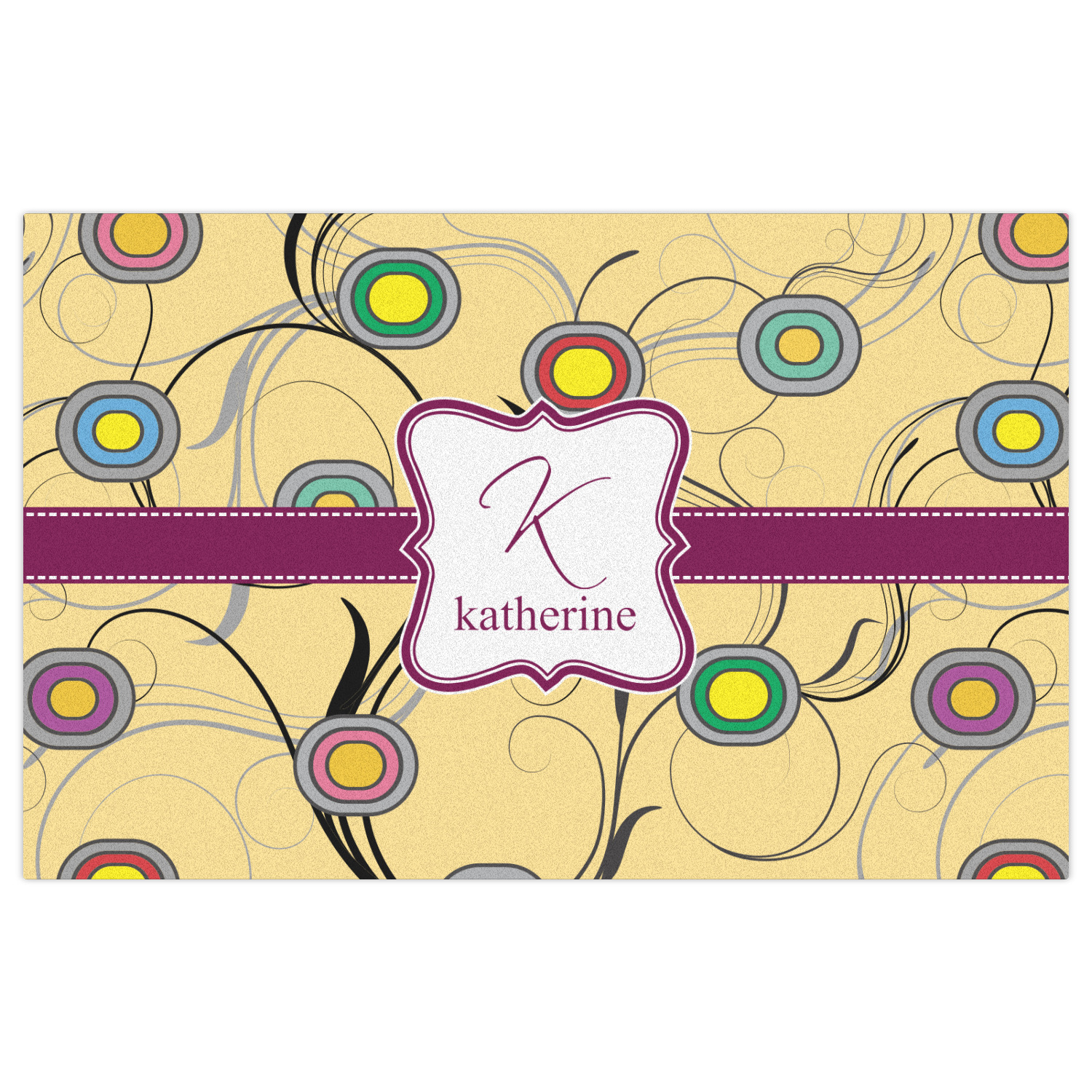 Our Ovals and Swirls print is available to you in multiple colors, so customize by selecting the color that works for you. Remember to add the personalization of your choice in the elegant center label!