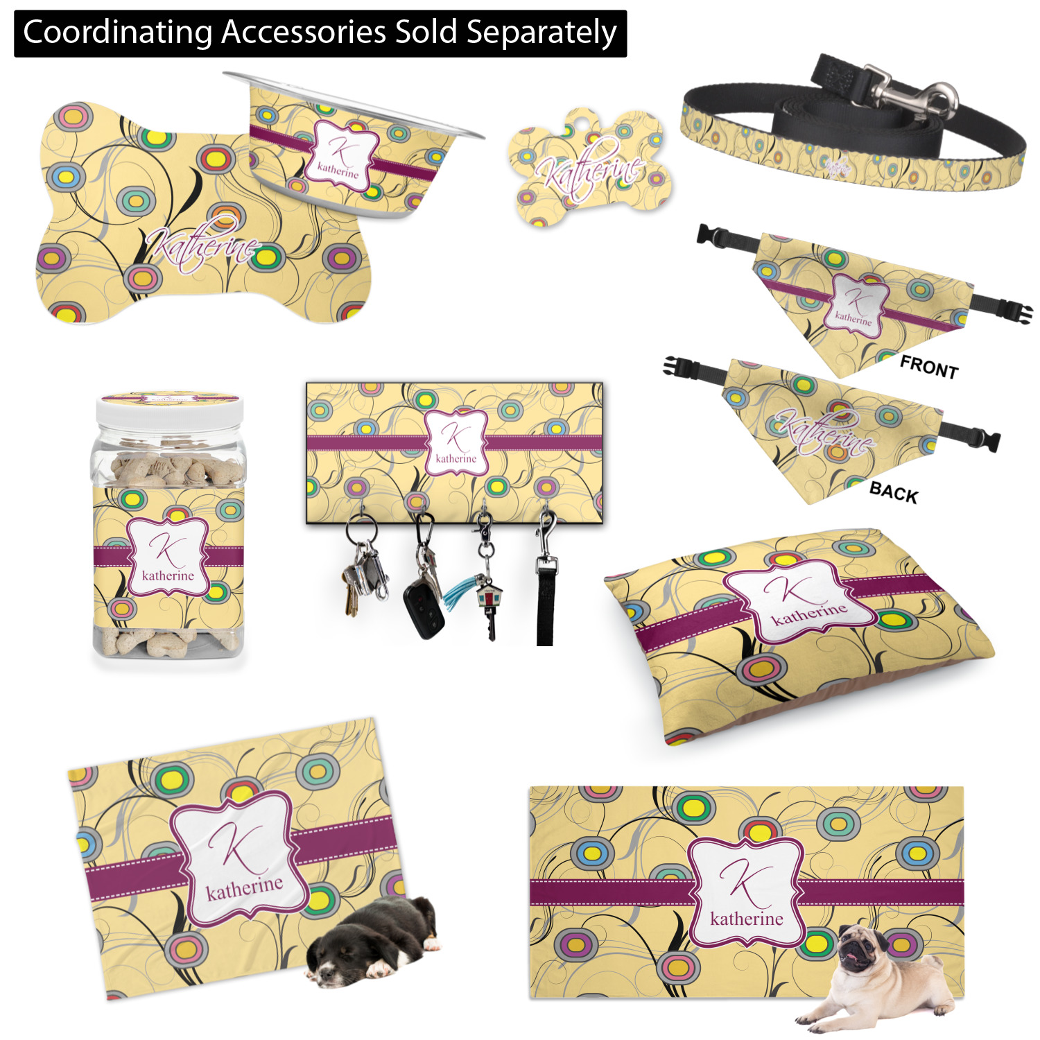 Pleased with your customized design? Perhaps purchase a matching dog food bowl, dog food mat, or even another, larger dog treat jar! Check out our Pet Accessories Department for even more gift options for your puppy.