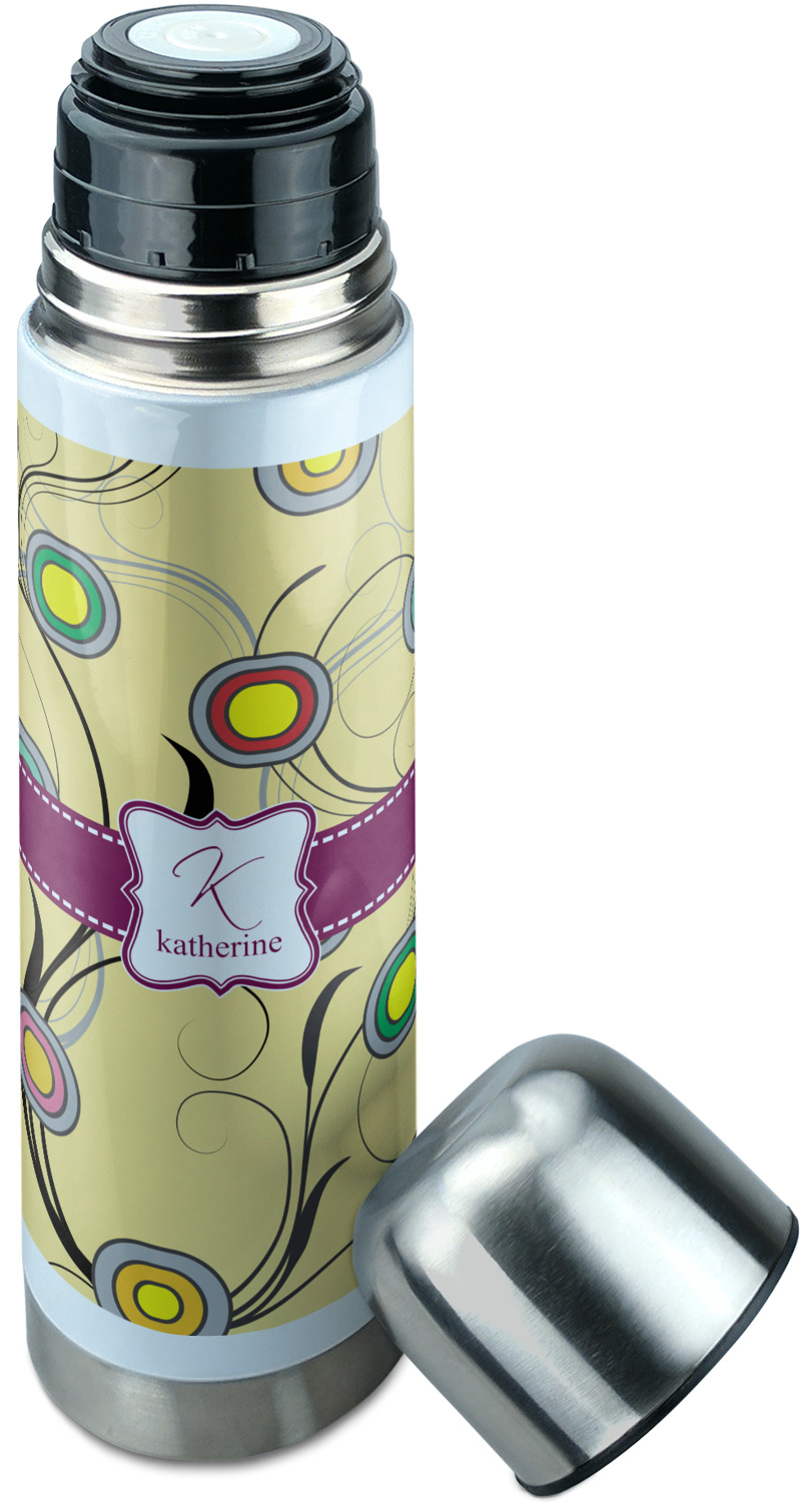 Manufactured from stainless steel, this thermos is built durably and double-walled insulated to preserve the temperature of your drink for hours. It also features a screw off lid that is made to also function as a small cup. Upon unscrewing this part of the thermos bottle, a pop-open, pour feature emerges. This feature allows you to slowly pour your beverage into your lid, ensuring a steady, controlled pour into your lid or other cup. With a capacity of 25 ounces, these large thermoses can hold several servings of your favorite beverage. Your customization is displayed all around the bottle with bright, vibrant color.