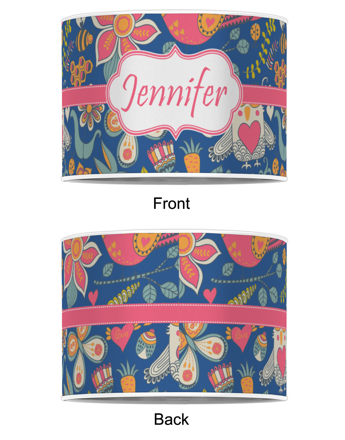 Our personalized drum lamp shades are available in 2 different materials: Poly-film or fabric. Poly-film lamp shades come with the option of white or black border trims to best match your customized design. Fabric lamp shades are finished with a rolled edge for a clean modern look.