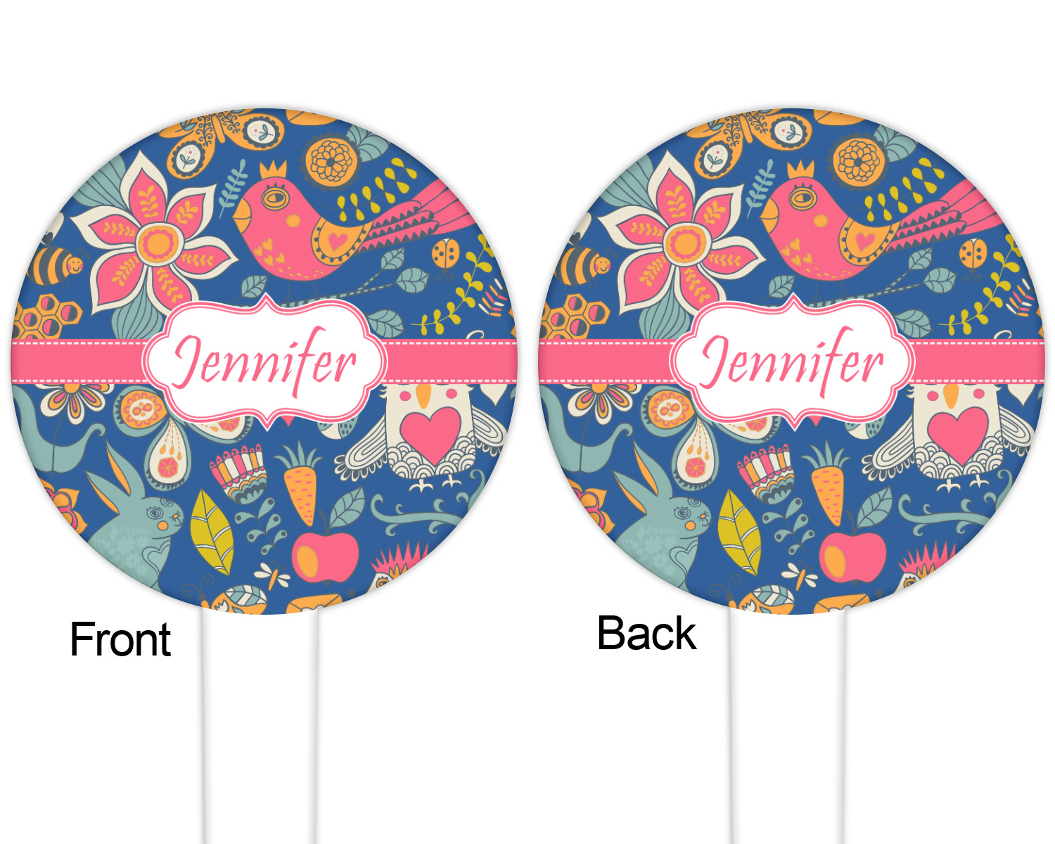 The round disc on these food & drink picks can be customized and personalized to your specifications. Your image will be printed in full color on one side or both sides. You can use the same image on both sides or use two different images.