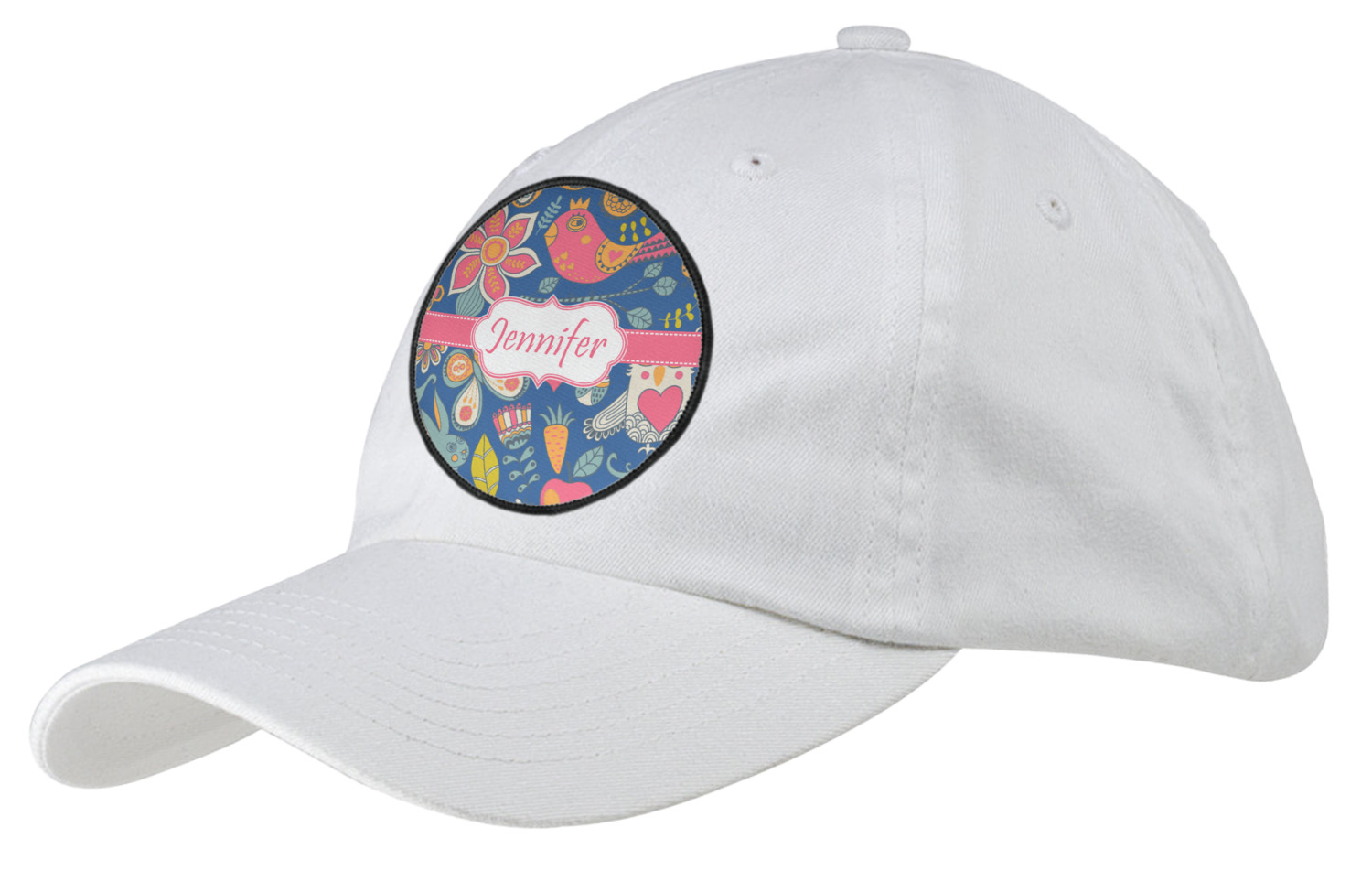 A pink ribbon with white stitching attached to a decorative white label trimmed in pink ties the entire design together. Add personalization of your choice in a coordinating color to make this pattern even more special.