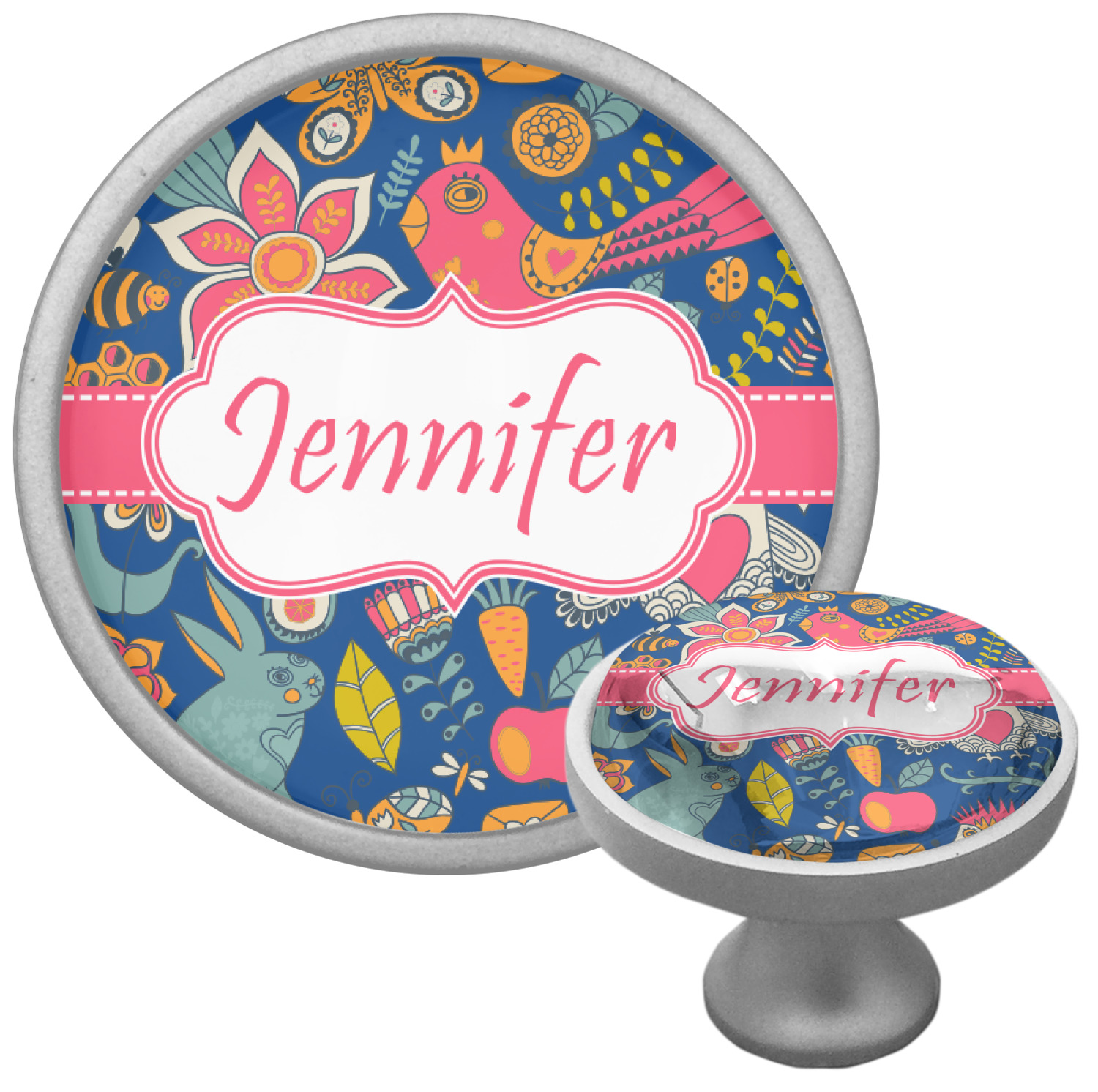 We sell these cabinet pulls in two different colors to better match your room's color scheme. We offer an oil-rubbed bronze base that is black in color, and a satin nickel option, which has a silver color. Your design is displayed across a high gloss vinyl insert that is placed on top of these cabinet handles. We then place a 1 inch thick glass cabochon atop the design, which seals the cabinet knob and makes the colors of your customization stand out. These custom cabinet knobs are approximately 1.3 inches in diameter. Your purchase includes a 1 inch screw that can be used to mount the knob to any cabinet in your home.