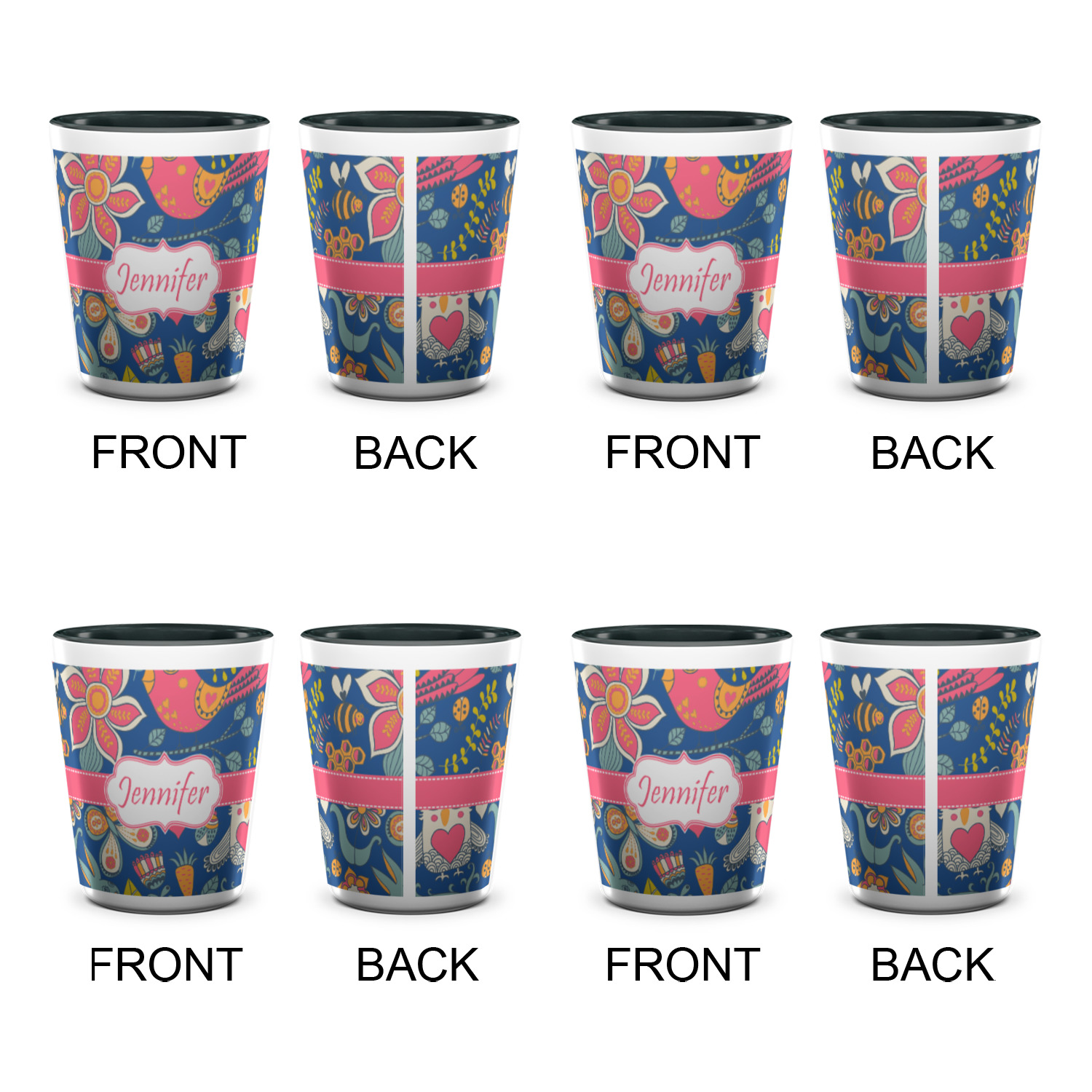 Made from ceramic these shot glasses are printed in full color with the design of your choice. These are a standard 1.5oz size and stand 2.25" tall. Available in a full white ceramic or a two-tone with a black color inside the shot glass. Buy a single or a set of 4, all of which can be designed separately to get you just what you want and need.