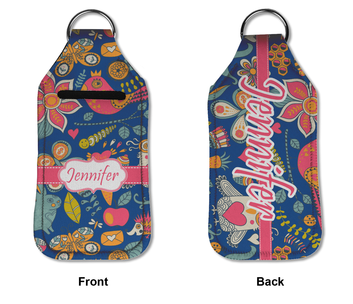 Each hand sanitizer holder comes with its own empty travel-sized, refillable hand sanitizer sure to fit snug in your customized sanitizer case! Our hand sanitizer cases are a durable, yet soft neoprene material sure to last any daily activities or travel agenda. Customize and personalize a hand sanitizer bottle holder with one of our two sizes - small (4.25" x 2.25") or large (5.5" x 2.5"). Each travel sanitizer holder comes with a keyring for attachment on bags, keys, or more!