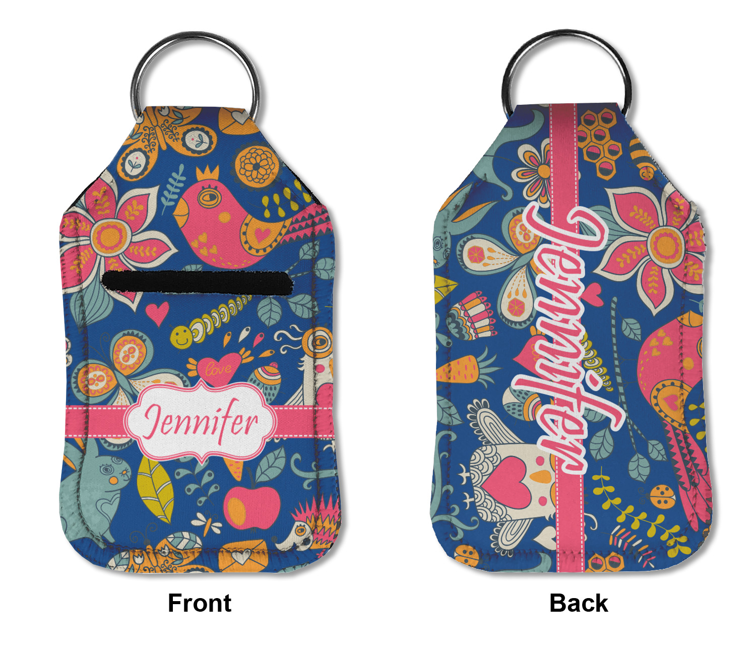 Each hand sanitizer holder comes with its own empty travel-sized, refillable hand sanitizer sure to fit snug in your customized sanitizer case! Our hand sanitizer cases are a durable, yet soft neoprene material sure to last any daily activities or travel agenda. Customize and personalize a hand sanitizer bottle holder with one of our two sizes - small (4.25" x 2.25") or large (5.5" x 2.5"). Each travel sanitizer holder comes with a keyring for attachment on bags, keys, or more!