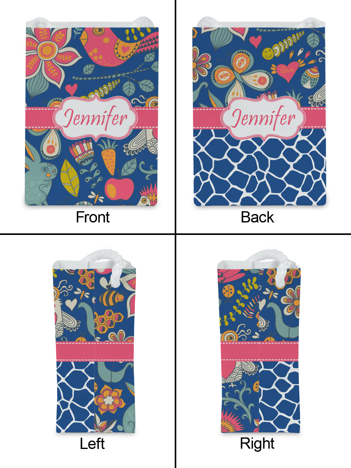You can design a your gift bag by customizing one of our design templates. Our design studio enables you to customize your design - you can change any part of the design template. You can also upload a photo, logo or any image.
