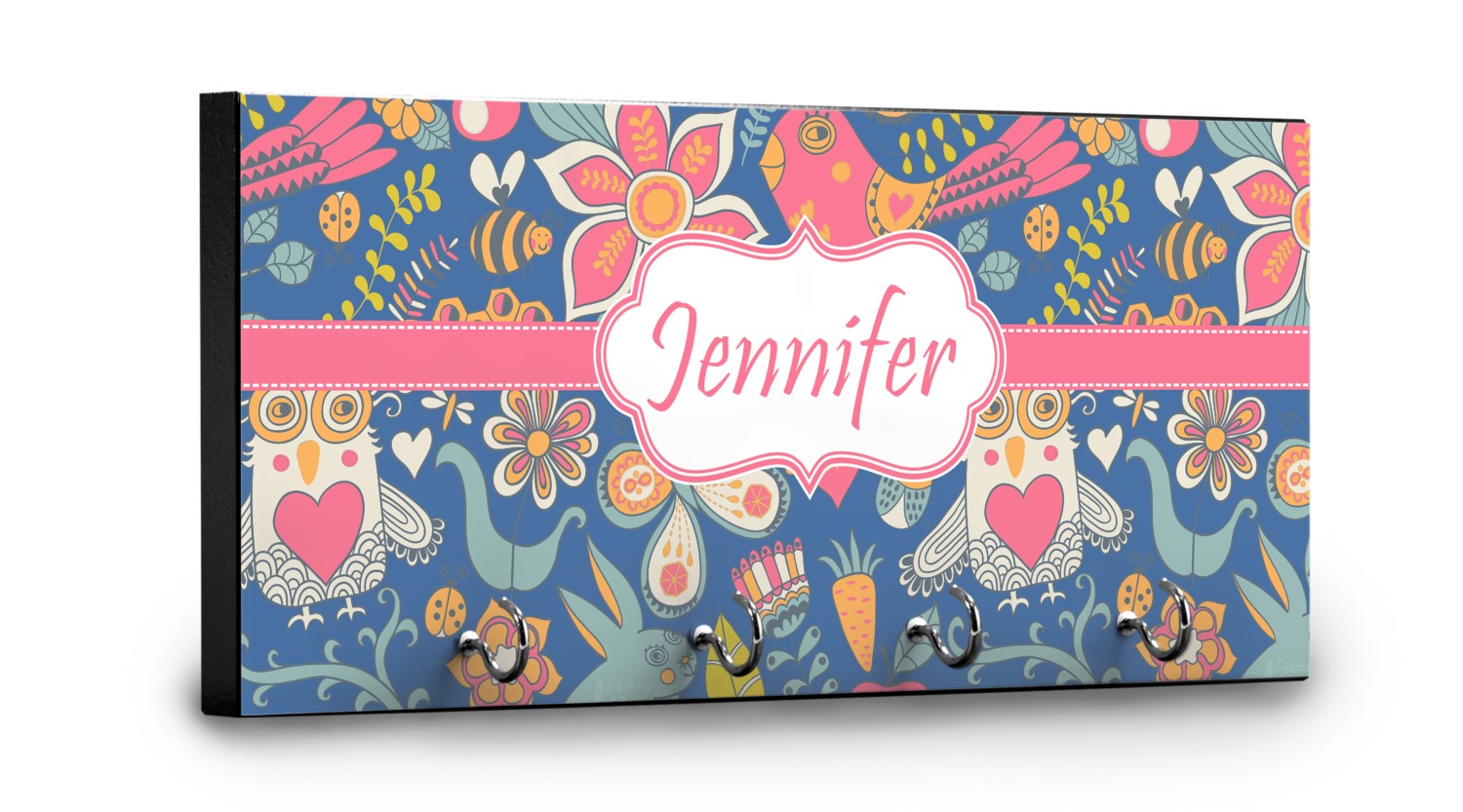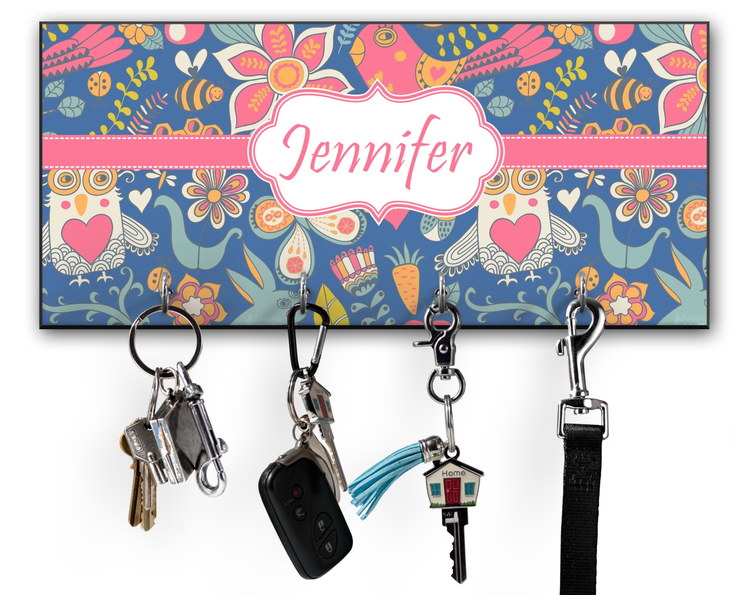 This 11" x 5" key hanger is made of sturdy wood and has four metal hooks lining the bottom. This is the perfect size for a family with several drivers. Not only can you hang keys on it though, but pet leashes and other small items. The board is black on the sides and back and is printed with the design of your choice on the front.
