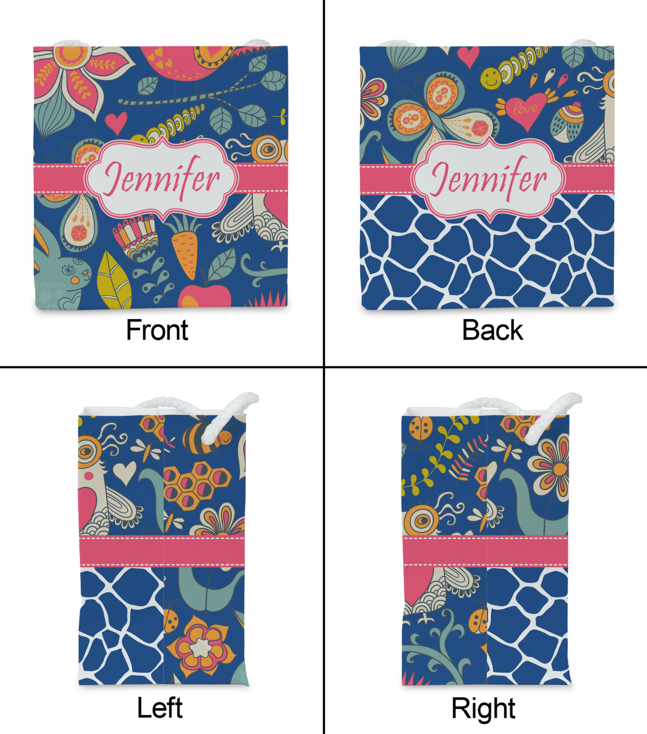 A pink ribbon with white stitching attached to a decorative white label trimmed in pink ties the entire design together. Add personalization of your choice in a coordinating color to make this pattern even more special.