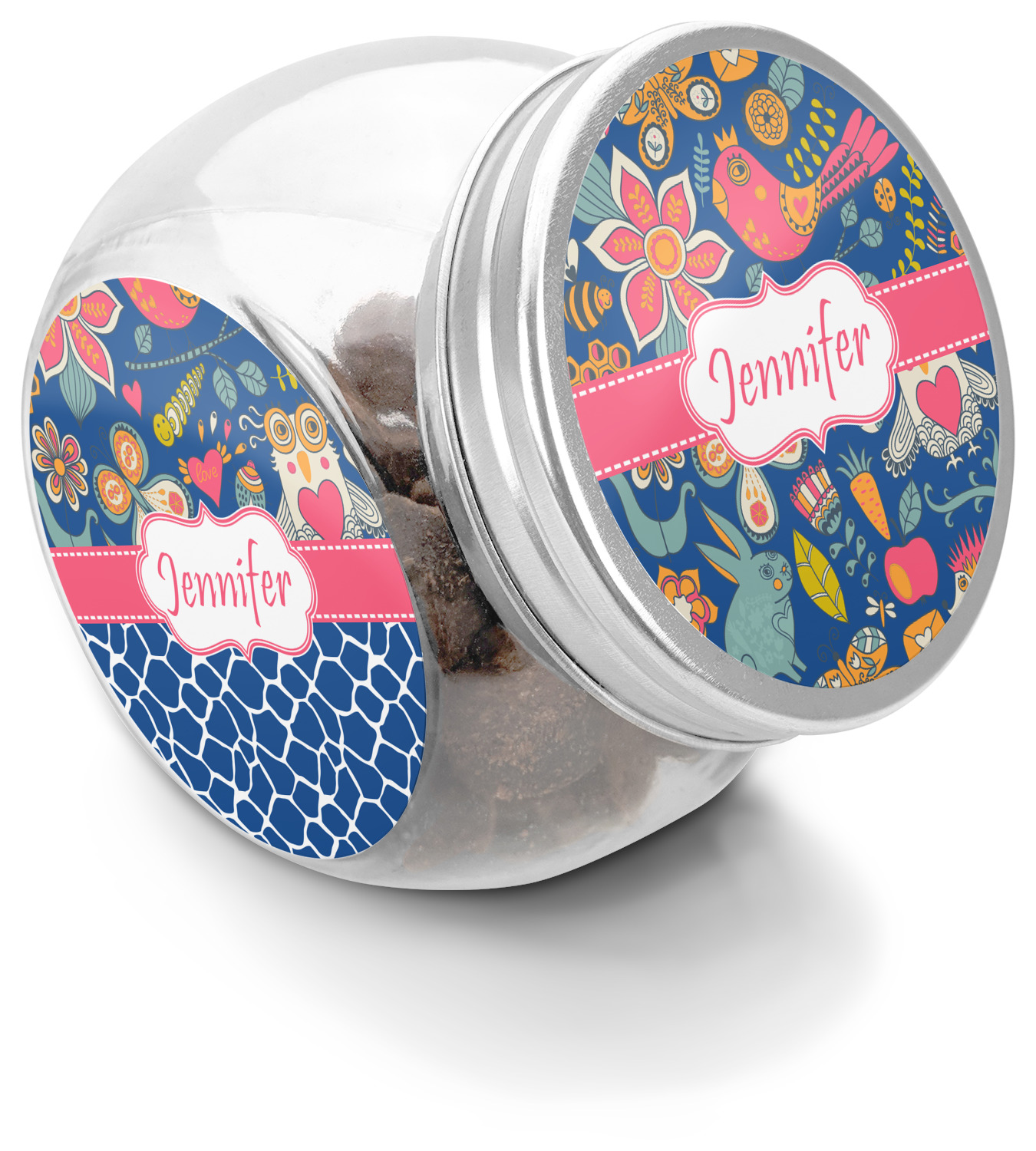 Pleased with your customized design? Perhaps purchase a matching dog food bowl, dog food mat, or even another, larger dog treat jar! Check out our Pet Accessories Department for even more gift options for your puppy.