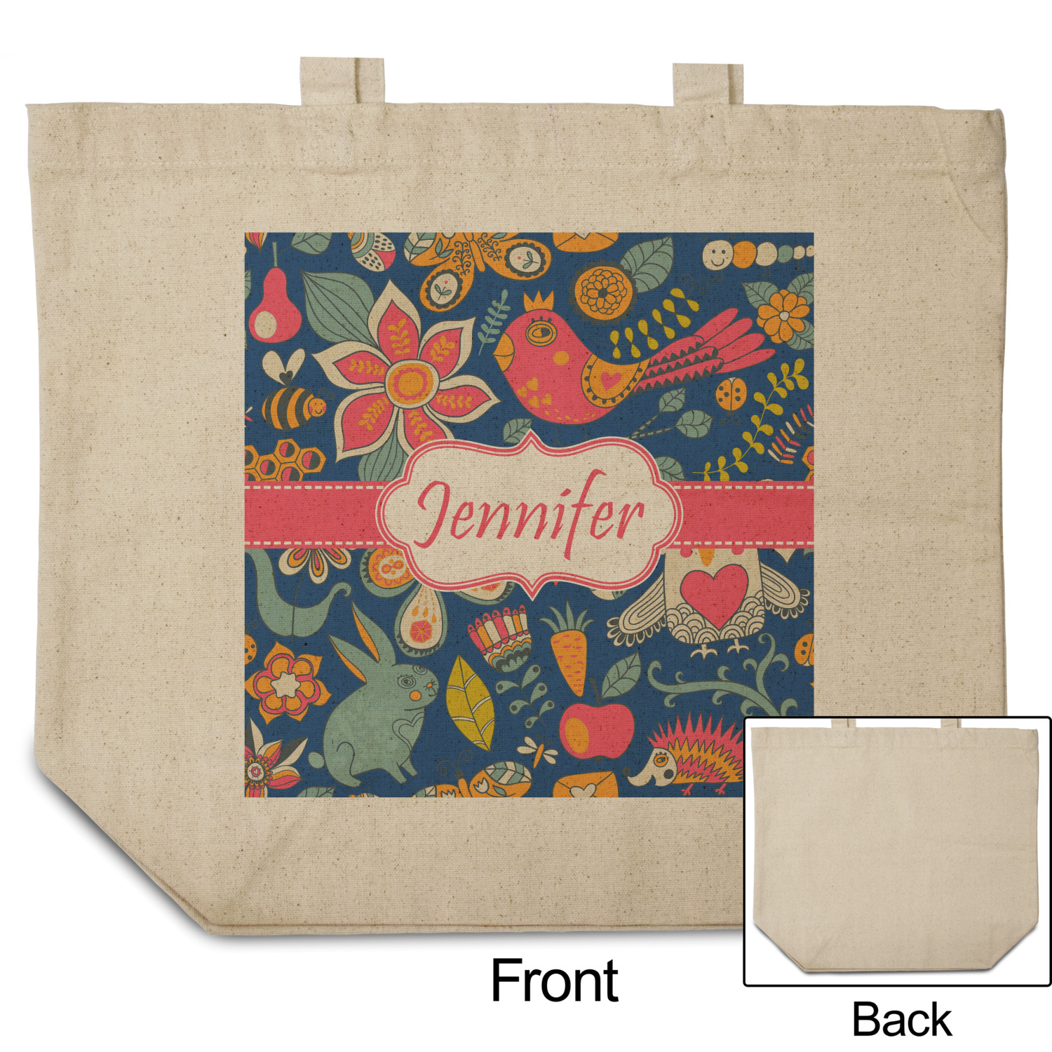 These cotton totes are washable and easy to care for, and they can be folded flat for storage. Your artwork, logo, or photo is printed in full color directly on the cotton tote in the front.