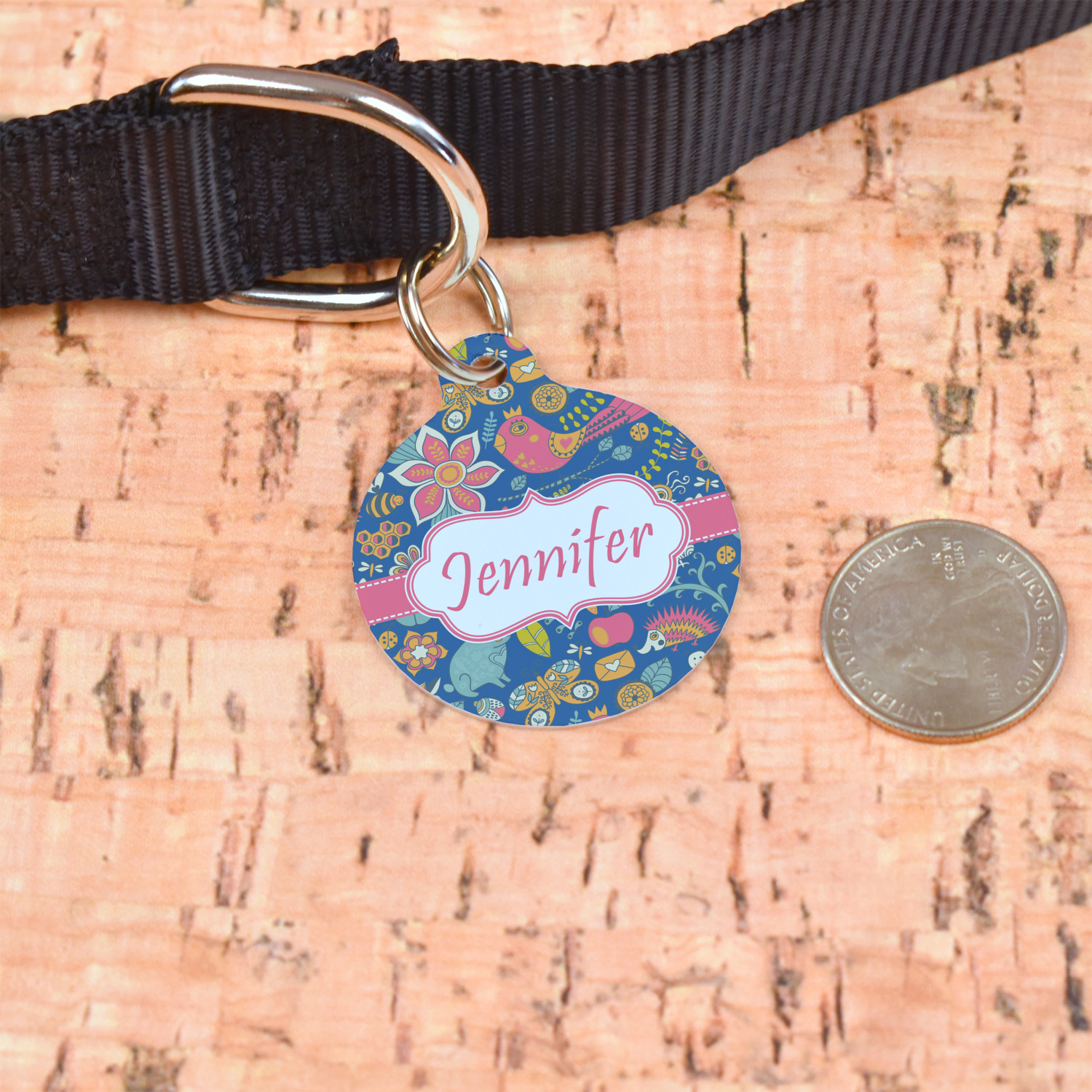 Go ahead; skip the monotony of plain pet ID tags with your very own, customized & personalized, round pet tag! This pet ID tag, fitting for both cats and dogs, will catch the eye of any onlooker (humans, canines, and felines, alike!) and accentuate your pet's individual personality.