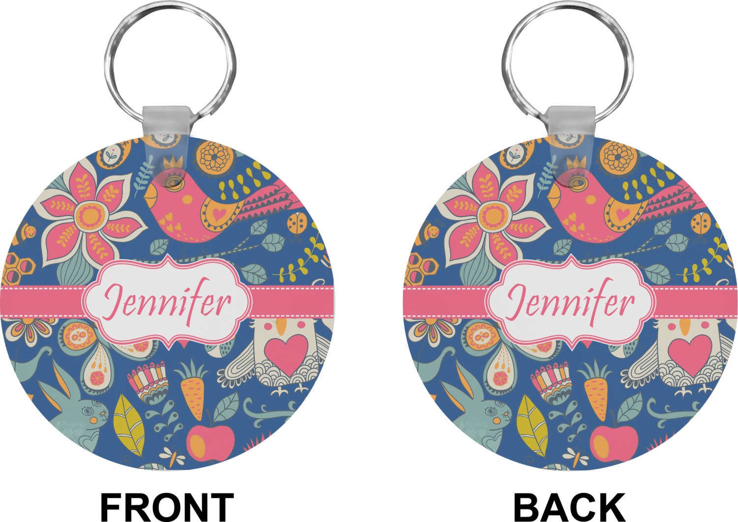 Our personalized keychains attach to the included metal, split key ring with a plastic, removable snap. Since a metal ring is included with your purchase, you have the liberty to keep your keys together on the ring, with or without your unique keychain. We offer this keychain in three different shapes: circle, heart, or diamond. We print your personalized design(s) on both sides of the key chain, and the surface has a glossy, reflective finish that only emphasizes your design. Each keychain is approximately 2.25 by 2.25 inches.