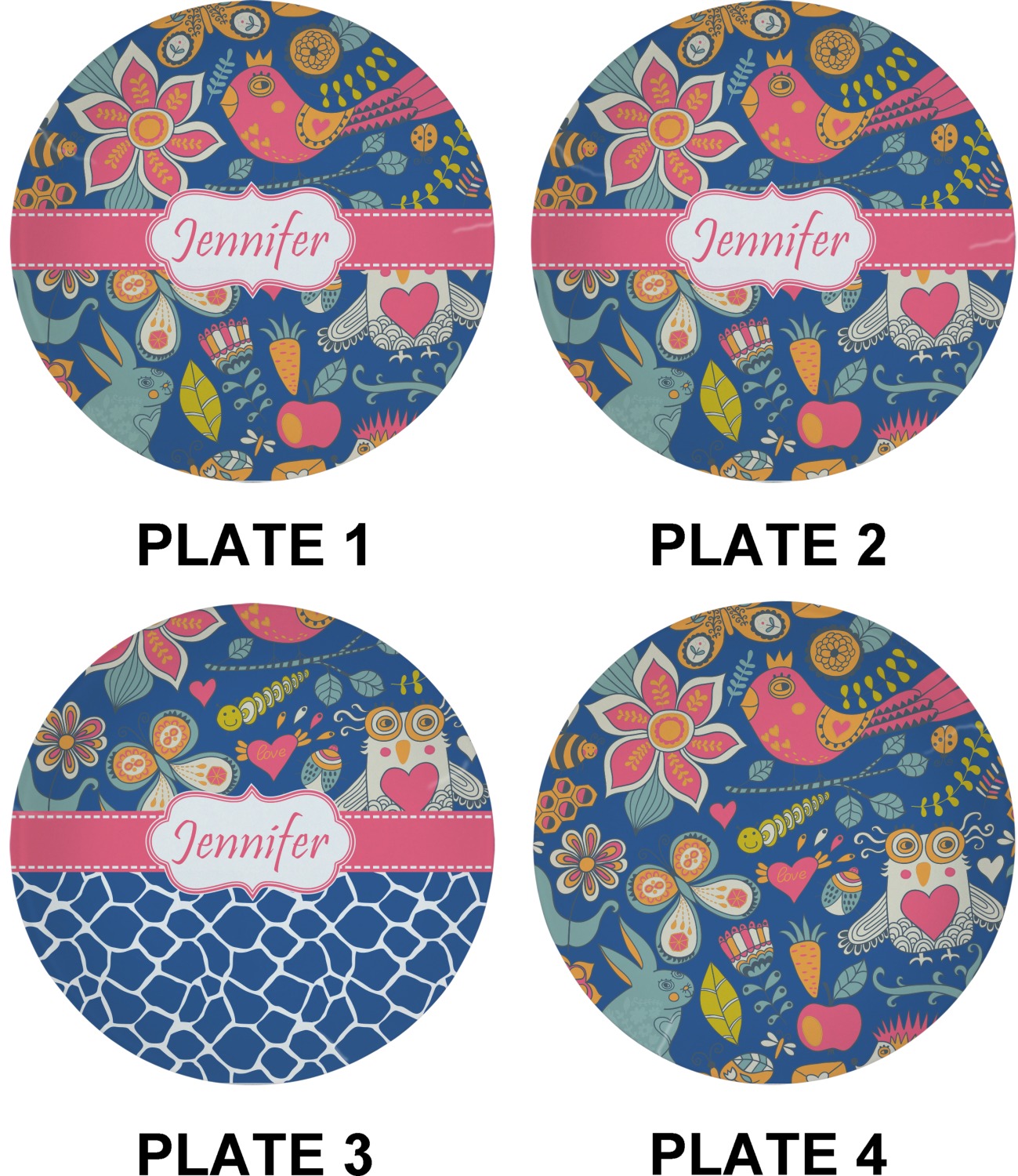 With a of designs and patterns, these plates are completely customizable. Choose a foodie design, complete with red-hot chili peppers, or go classic with stripes or plaid. Include your monogram or family name to make sure these plates never get lost at parties!