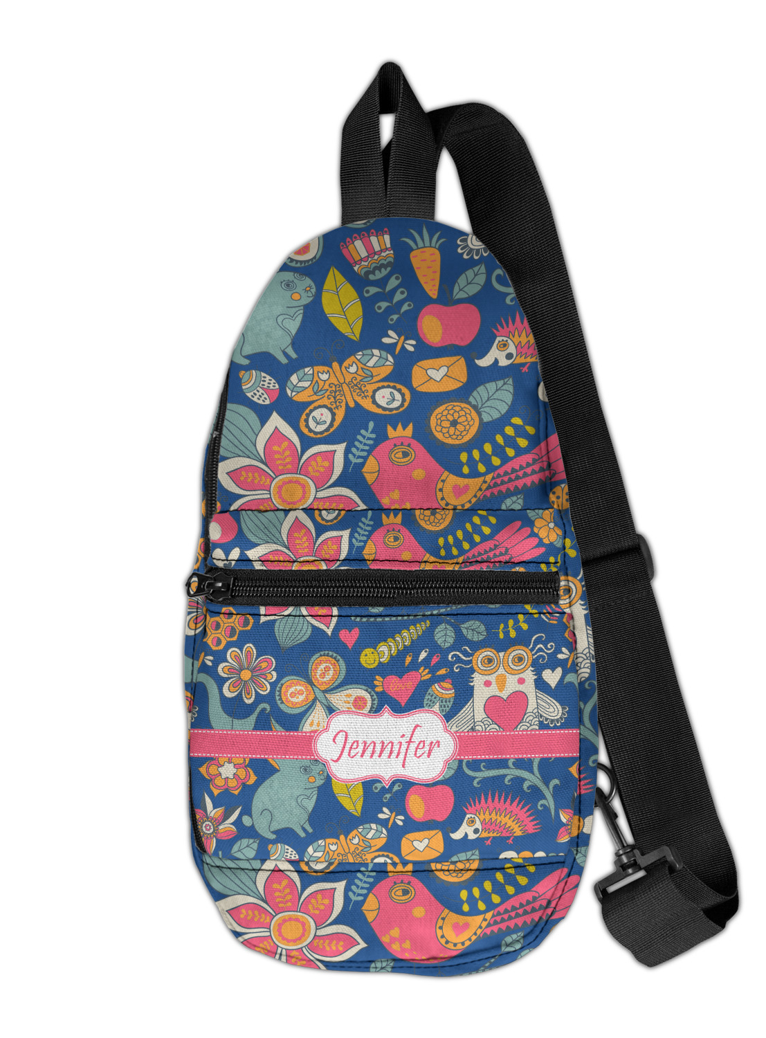 These sling bags are made from a durable polyester canvas. The fabric is printed with your design, then cut and hand sewn right here in the USA.