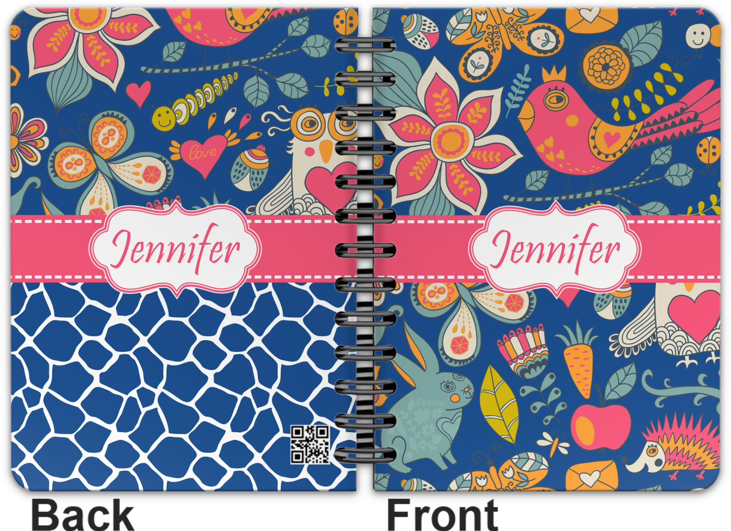 This spiral notebook includes 75 sheets of thick, ruled paper. The front and back of this custom notebook is made of a robust, laminate, plastic covering. We print your personalization on these two panels, underneath a glossy finish, which emphasizes the colors of your design. The two panels and the sheets of paper are held together by a sturdy, black coil. The paper within your bound notebook is perforated for easy, clean tearing.