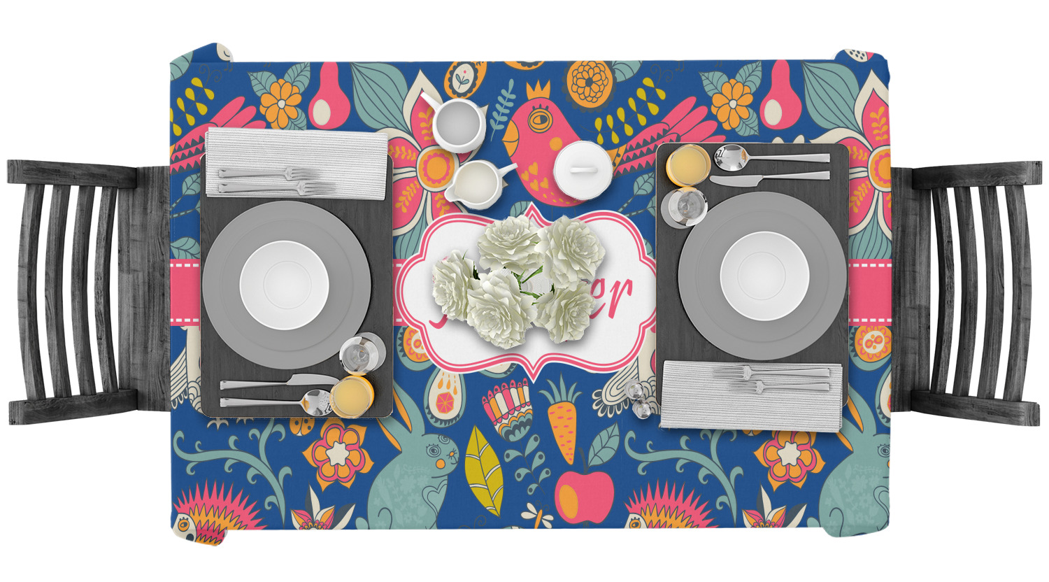 Whether you want to create a formal or informal dining room ambiance our personalized tablecloths will do just the trick!! Pull them out for the holidays, dinner parties, or use them everyday. We have a plethora of designs that cater to kids, teens, and adults; all tastes can be satisfied!!