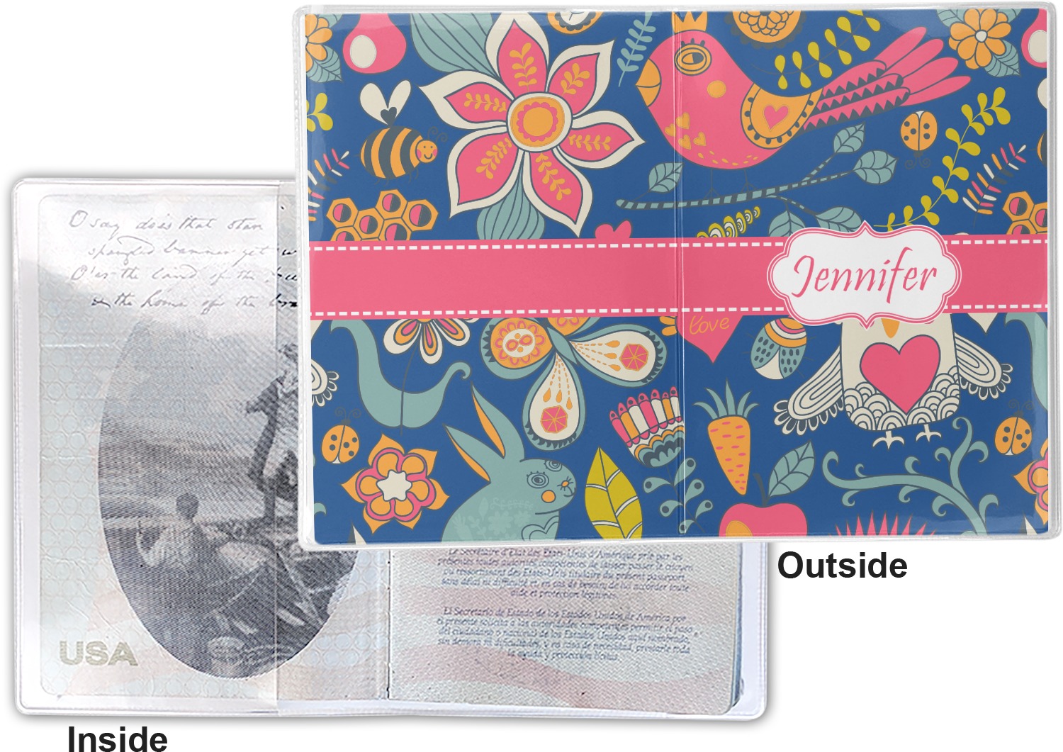 This cover is made of a sturdy clear vinyl with a personalized vinyl insert inside. There is a large and a small pocket on either side to hold the covers of your passport easily and firmly. The passport holder is approximately 7.5" x 5.25", the perfect size to snugly fit your passport. This slim cover is the perfect way to protect your passport without being one more bulky item you have to carry.