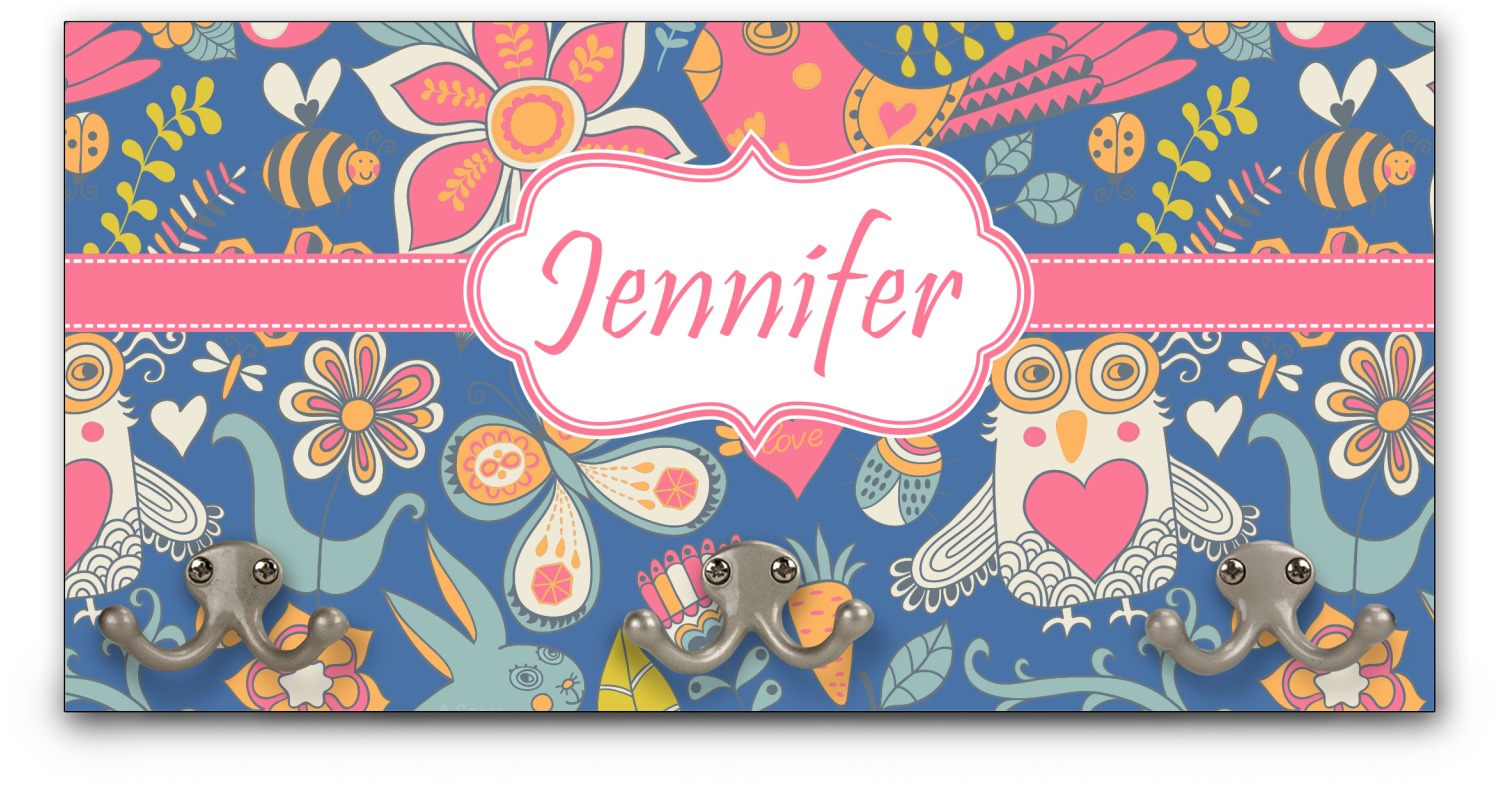 This coat rack is the perfect way to add some personality to your wall or entryway. The board is made of a strong maple that is approximately 16" x 8". The three 2-prong hooks are a sturdy metal that have three screws attaching them to the board. Your design is printed right onto the front of the board while the back and sides are a simple black.