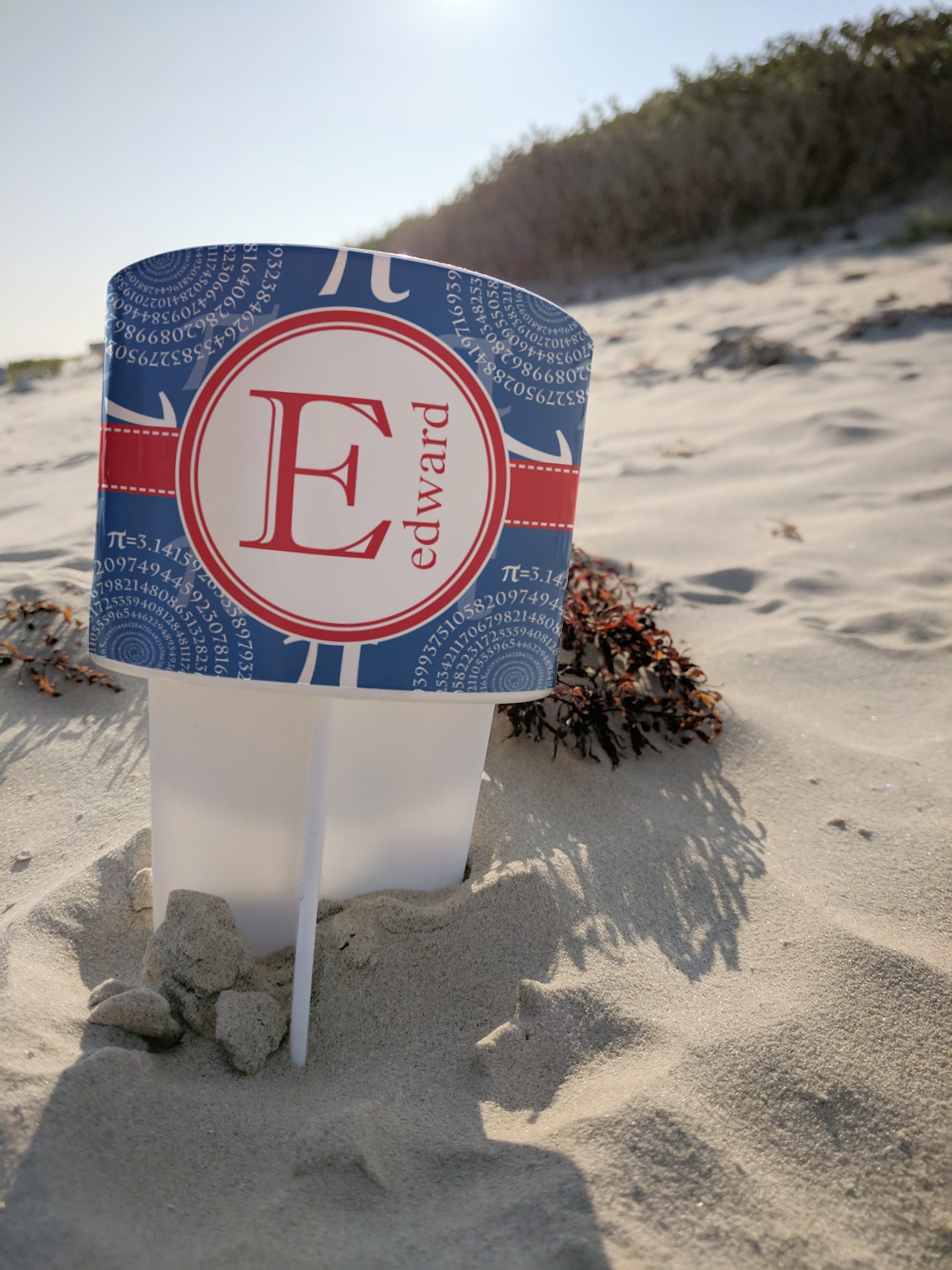 This cup holder has a large stake at its bottom that anchors it to the sand or ground below, while the cup holder rests above the stake. The entire drink holder is made of durable plastic and displays your customization around the cup holder portion. We sell these personalized beach spikers in two different colors: black and white.