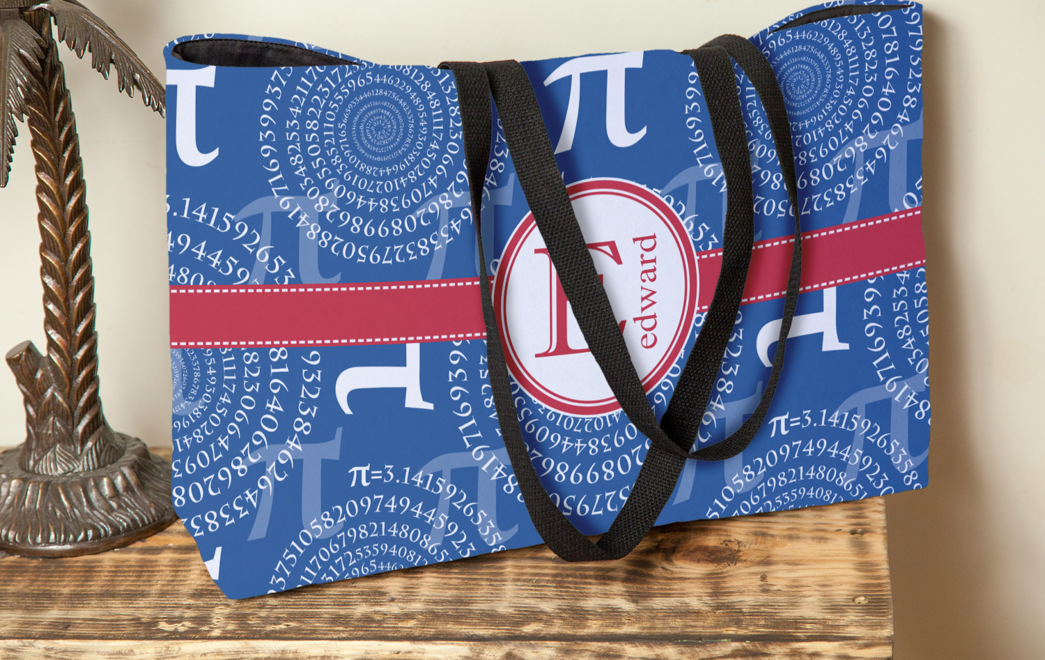 These beach totes are handmade here in the USA. Fabric is printed with your design. The tote is then sewn from the fabric pieces, lining and handles added.
