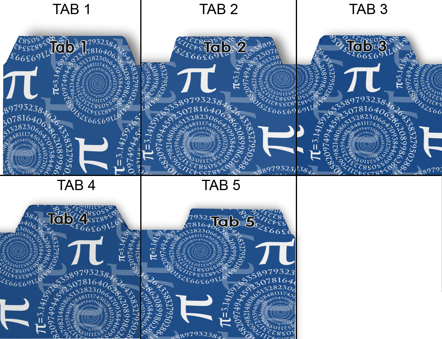 Whether you use binders at school or at work, we have designs to suit all of them. Available in 5 or 6 tab sets, you are sure to find a set to suit your needs. The back of each one is white and can be used to take notes, write vital information on, etc.