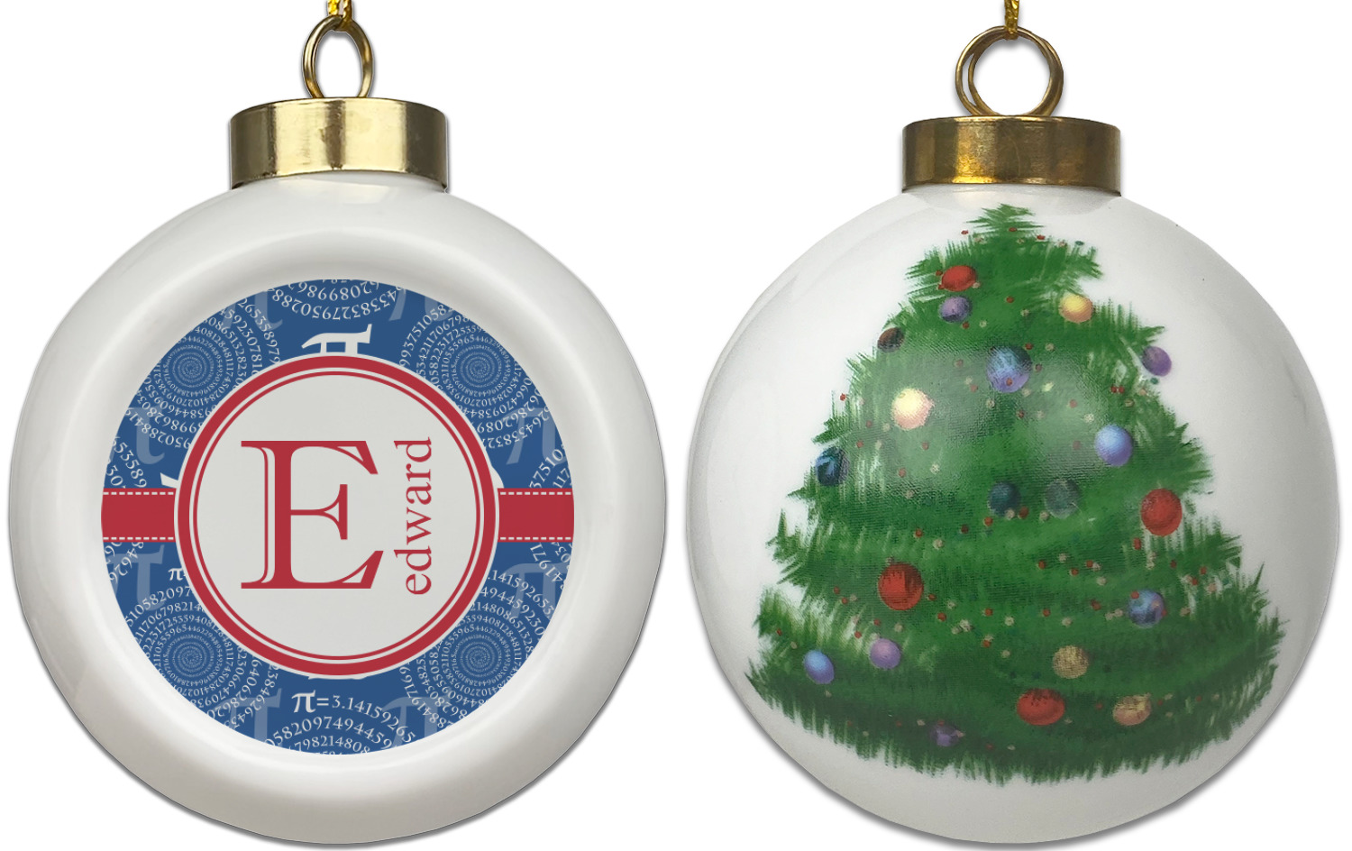 Our Christmas ornaments are a unique ceramic ball shape with a twist as it has a flat face to display your custom design! Select from one of our two design types - Christmas Tree or Poinsettia Garland - to adorn the curved back of your personal design. Each ornament measures 3H x 2.5W x 2D accompanied with a gold string accent for finishing touches to hang on your beautiful Christmas tree!