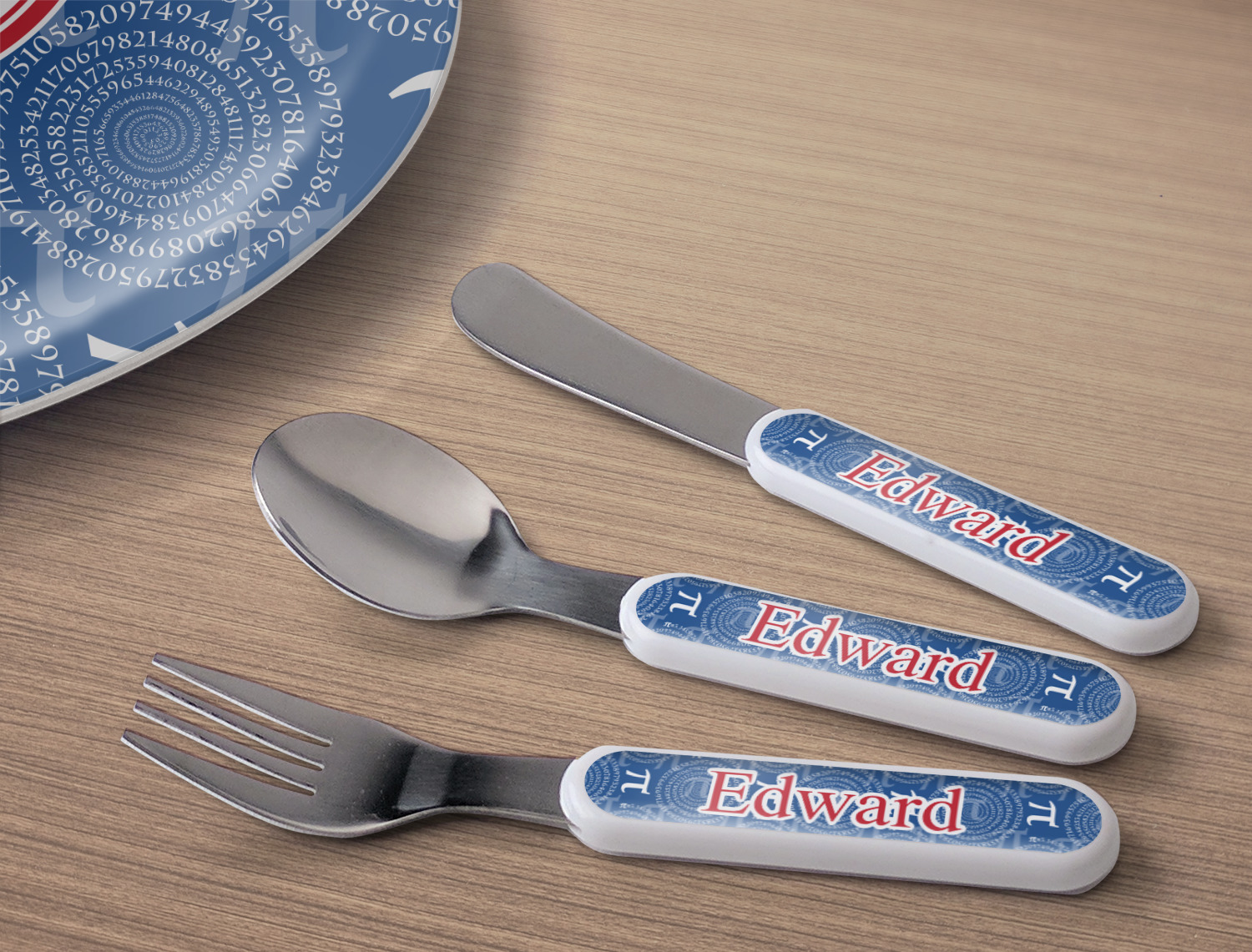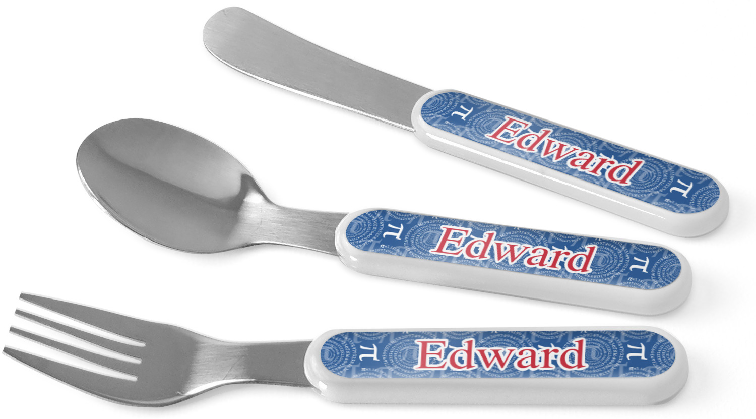 This set of kids' silverware includes a 5.5 inch spoon, fork, and knife, catered to your little one's needs. The prongs of this fork are flat and dull, while our spoon is small enough for tiny mouths, and the dullness of the knife itself resembles a butter knife, at most. These kids' utensils are made of stainless steel, while the handles are crafted from a durable plastic that will withstand the energy and use of your young one. We print your customization across the handles, making the cutlery set unique to your child only.