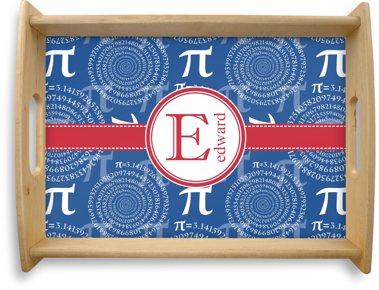This serving tray with handles features square edges and two rounded sides, creating a very modern look. Each side is fabricated from a beautifully cut, natural wood. The bottom of the interior of the tray displays your customized design in bright, vibrant color. The tray is sold in both a black color and a natural wood look. Each variation of the wood serving tray has two sizes: Small, which is 14" x 10" x 2.25", and Large, which is 19.5" x 13.5" x 2.75".