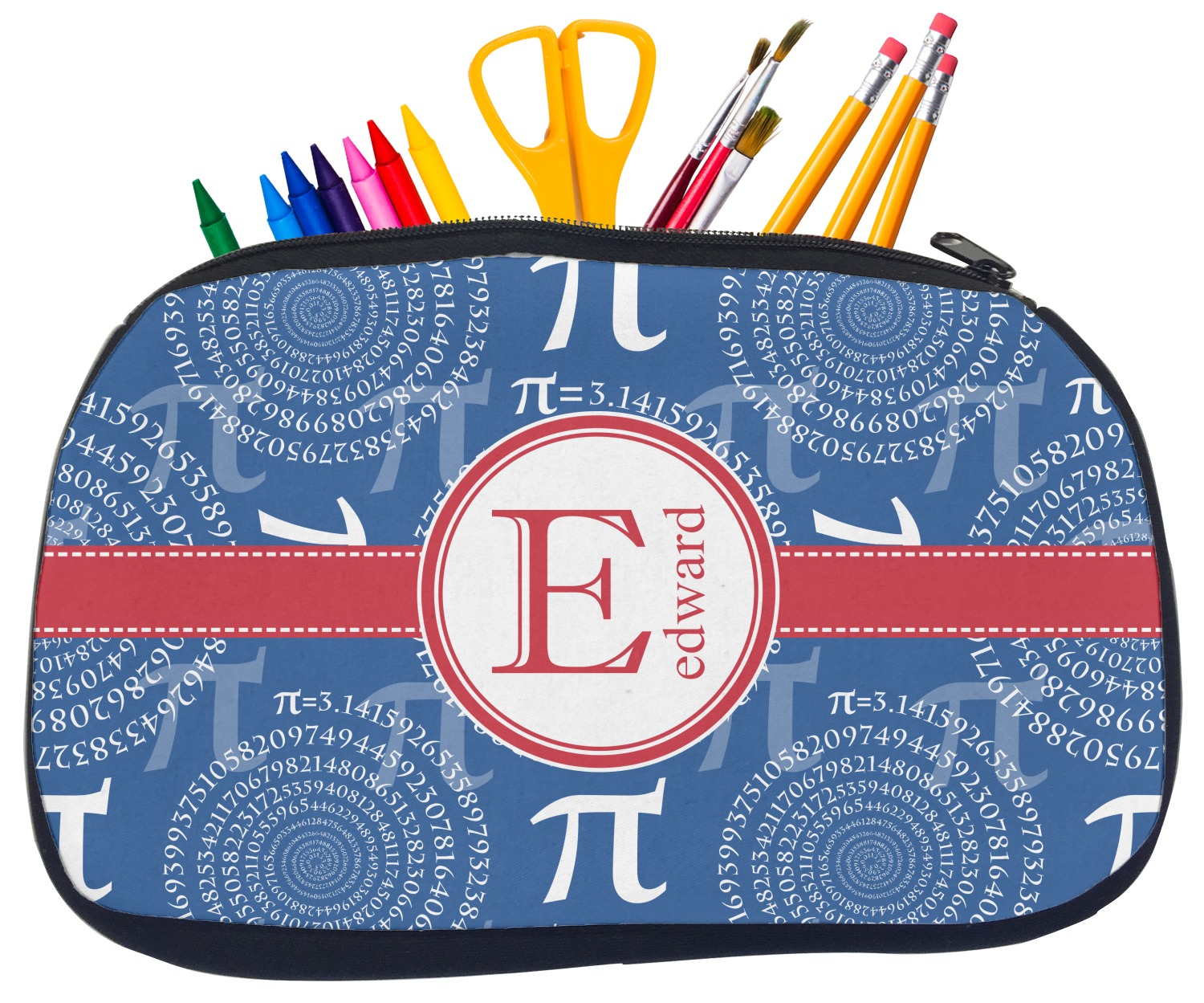 Built from durable neoprene, these pencil pouches, are water resistant, and prevent leaking ink from spilling into your backpack or purse. These custom pencil cases secure with a robust, black zipper. We print your personalized design on the front of this pouch, while the remaining sides a simple black color. These colored pencil cases [880] are sold in two sizes; our smaller version measures at 8.5 by 4.5 inches, while the medium measures at 10.5 by 6.5 inches. The smaller size is more suitable for holding pencils and pens, while our medium size can accommodate pencil sharpeners, scissors, and erasers.