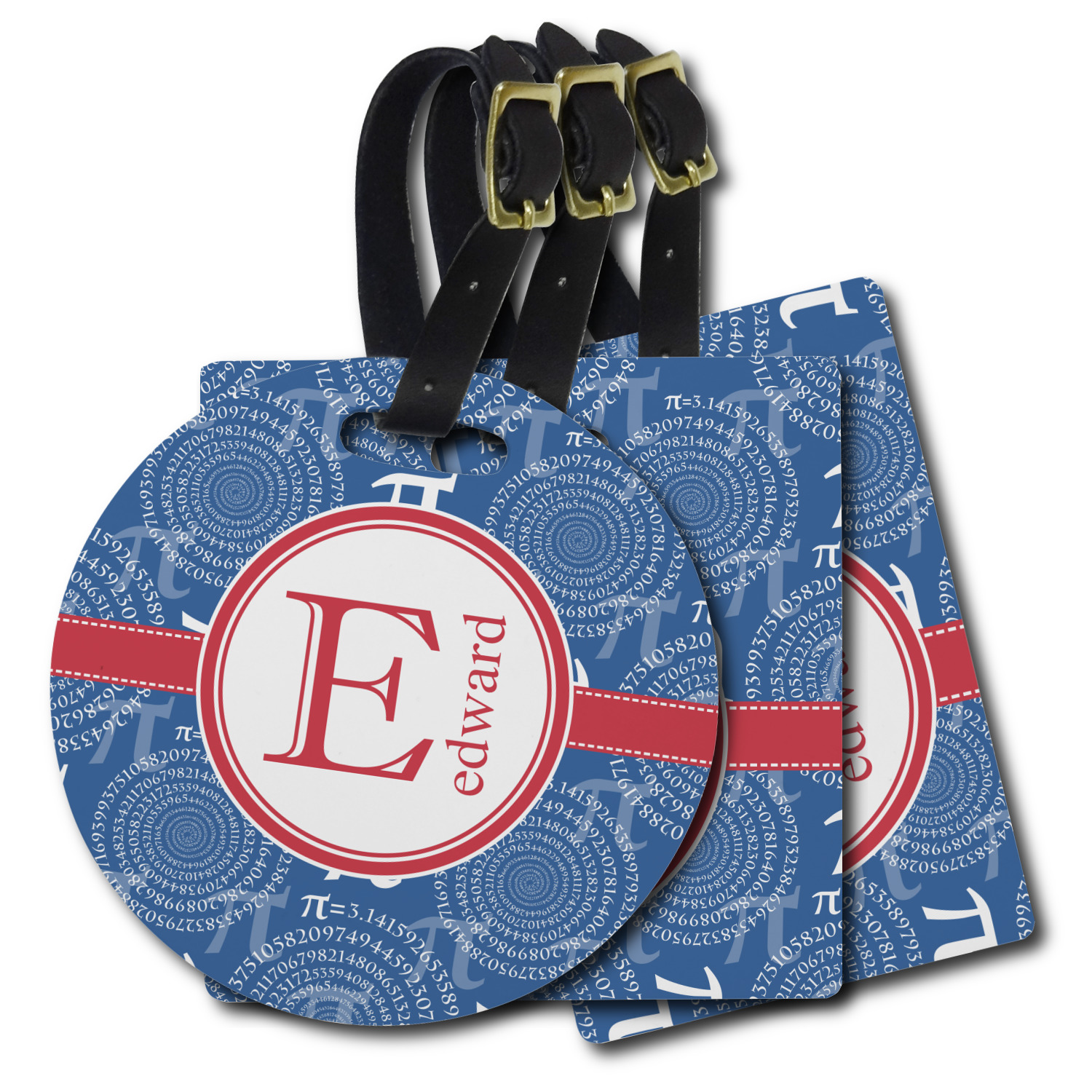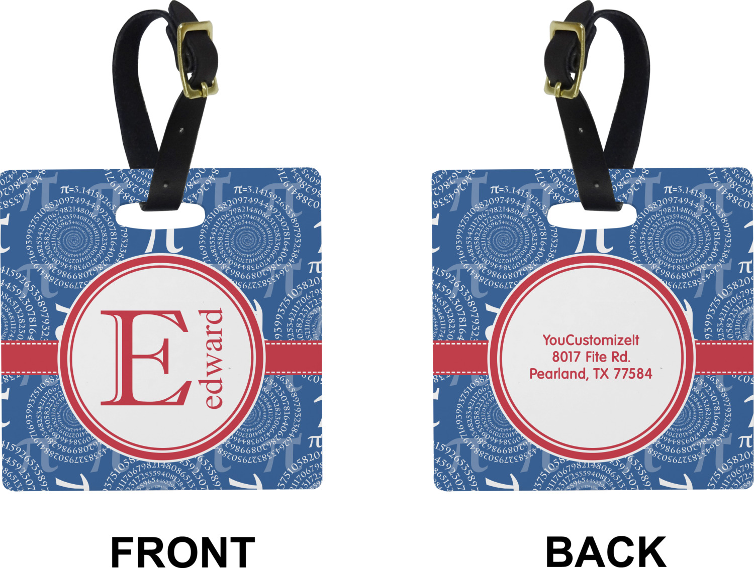 These personalized bag tags are sold in a variety of shapes, so that you may find the product that meets your vision exactly. We sell a round luggage tag, which measures at approximately 4" x 4". Our square luggage tag is about 3.5" x 3.5", while our rectangular version is 2.75" x 4 ".