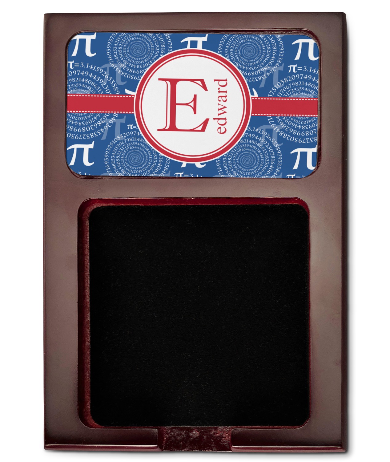 Crafted from a fine mahogany, this post it note holder is in the shade of a dark, cherry color. The dispenser itself is about 4.25 by 6.25 by 0.75 inches. You can place your 3 by 3 inch sticky notes in the indentation below the nameplate. We print your customization onto the nameplate that rests above the velvety indentation.