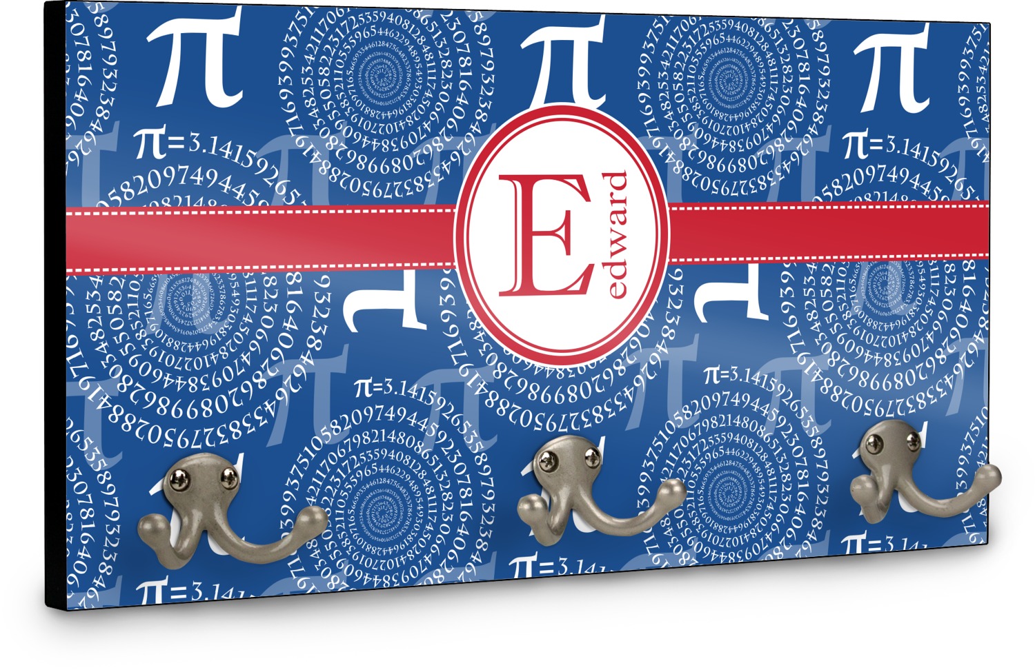 This coat rack is the perfect way to add some personality to your wall or entryway. The board is made of a strong maple that is approximately 16" x 8". The three 2-prong hooks are a sturdy metal that have three screws attaching them to the board. Your design is printed right onto the front of the board while the back and sides are a simple black.