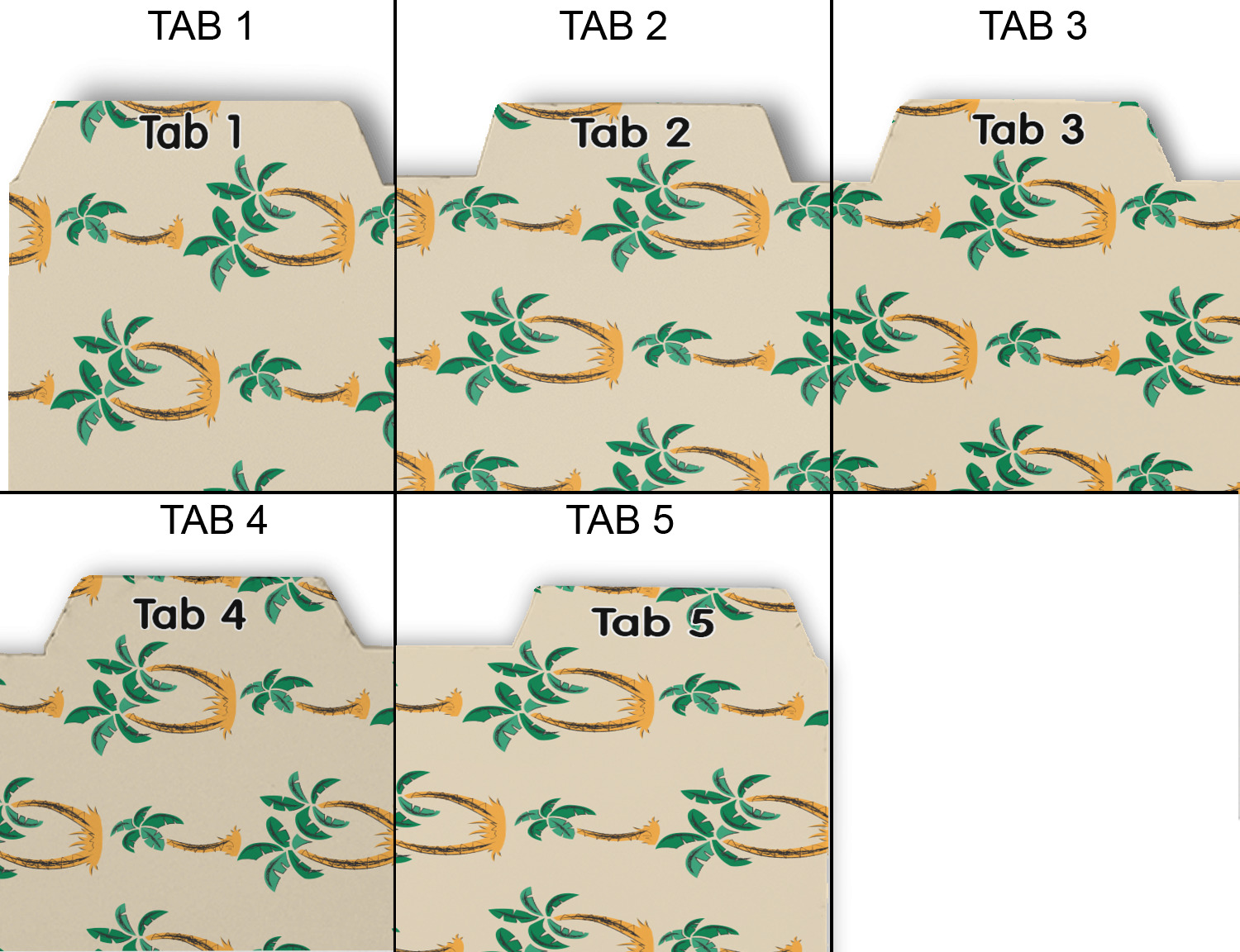 Whether you use binders at school or at work, we have designs to suit all of them. Available in 5 or 6 tab sets, you are sure to find a set to suit your needs. The back of each one is white and can be used to take notes, write vital information on, etc.
