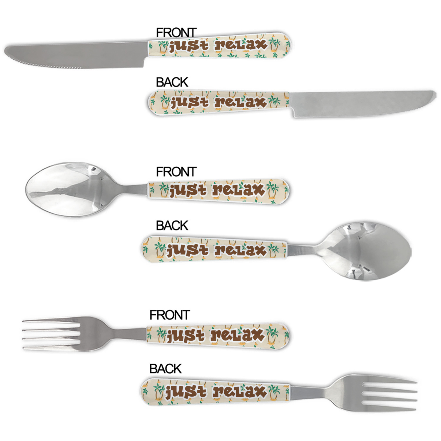 One of those items we all use on a daily basis and never give it much thought - cutlery. Having your own customized set of cutlery adds that special touch. A great addition to our custom plates and drinking pint glasses, this flatware set can be made in the same patterns to match.