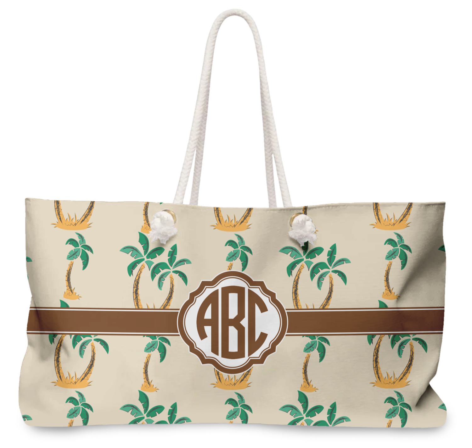 Our oversized weekender tote with rope handles is perfect for your weekend at the beach or on the town. This large tote are 24" W X 13" H, with a 5" gusset and a 27" thick rope handles with a knot that is put through a grommeted brass hole.