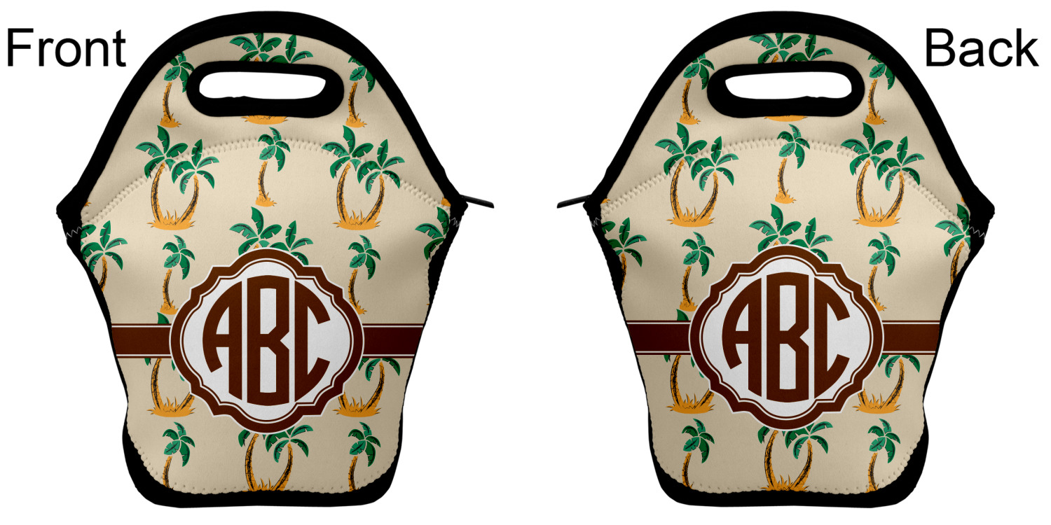 Our personalized lunch bags are made from a strong neoprene, and secure with a zipper closure that lines the top of the bag.The edges of the neoprene are sewn together with a heavy duty stitch, adding to the durability of the bag. The is accompanied by a reinforced handle at its top, for the easy transport of your lunch. We display your personalization across both the front and back of this neoprene lunch bag, while the remaining sides are a sleek black in color. Each bag measures at 13.5 inches tall, and 11.5 inches wide.