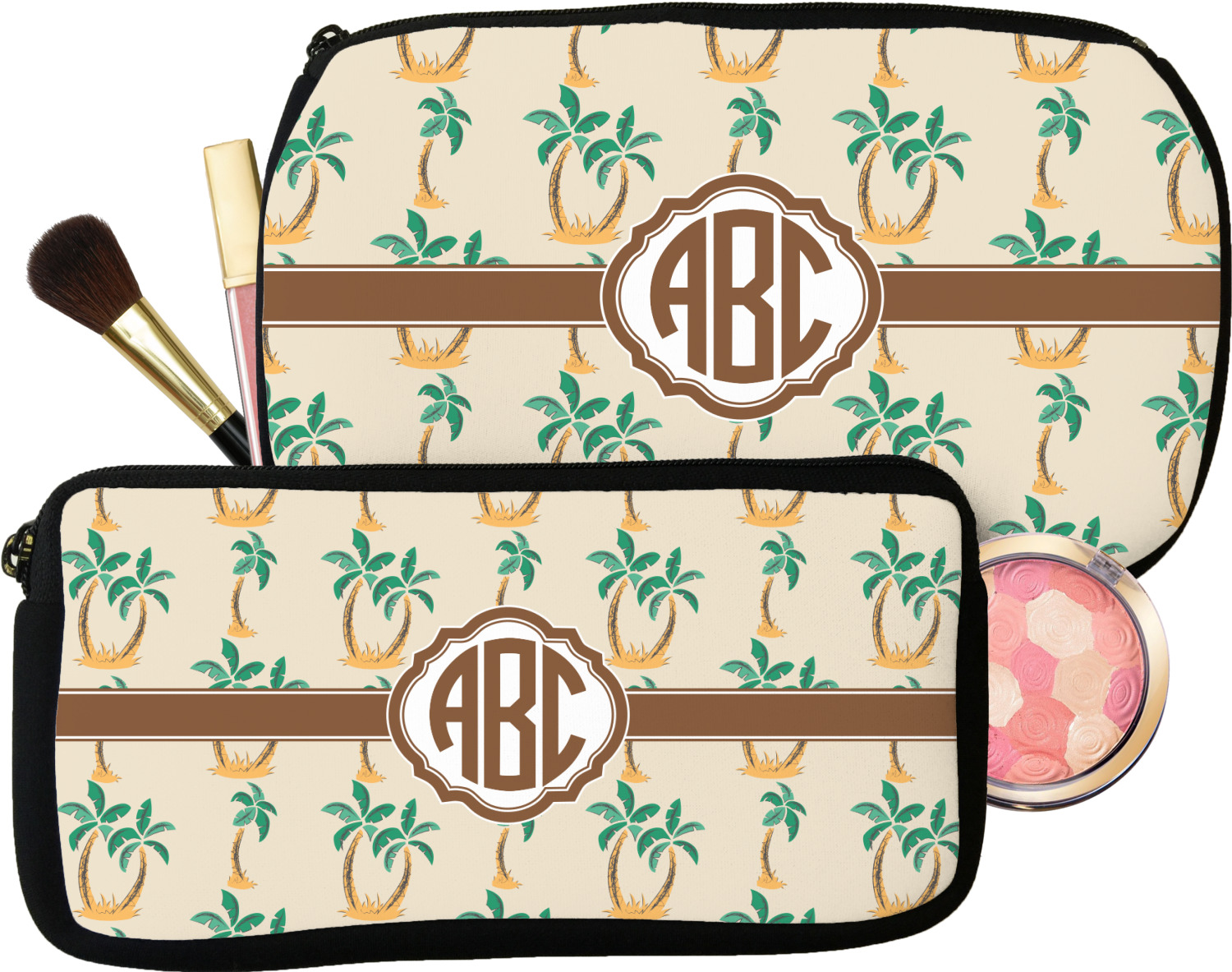 Our personalized makeup bags are available in many different designs, patterns and colors - so you are sure to find one that will love. They are made of neoprene (same material as wet-suits) and thus are water resistant, so spillages in your makeup bag will not end up all over you purse. They are customized on one side and are black on the other side and the zipper is black as well.