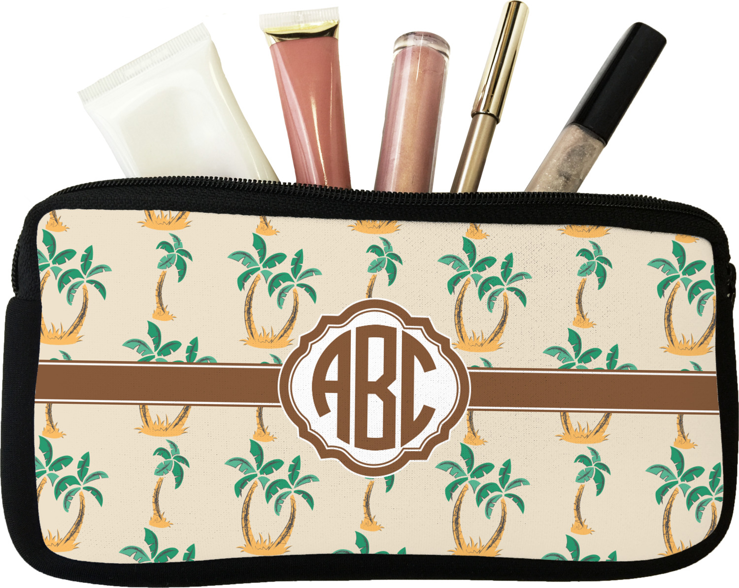 Our personalized makeup bags are available in many different designs, patterns and colors - so you are sure to find one that will love. They are made of neoprene (same material as wet-suits) and thus are water resistant, so spillages in your makeup bag will not end up all over you purse. They are customized on one side and are black on the other side and the zipper is black as well.