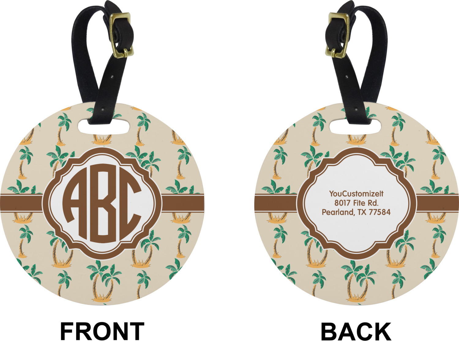 These personalized bag tags are sold in a variety of shapes, so that you may find the product that meets your vision exactly. We sell a round luggage tag, which measures at approximately 4" x 4". Our square luggage tag is about 3.5" x 3.5", while our rectangular version is 2.75" x 4 ".