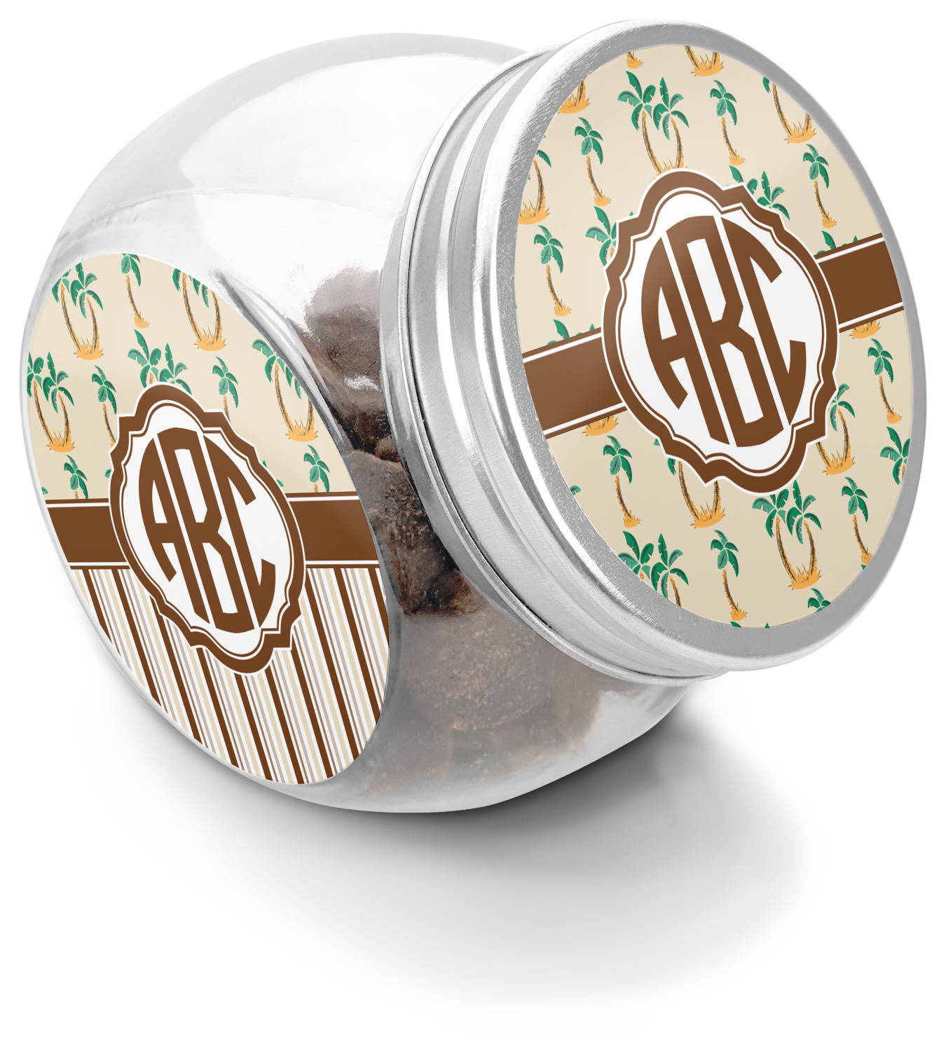 This treat jar is an excellent way to store treats for your favorite canine or feline. Moreover, their delicate, classy appearance makes them a tasteful addition to your countertop's décor. Crafted from clear glass, its unique construction and silver metal, screw-on lid allows for quick and easy access. Three, permanent, vinyl stickers are applied to both sides of the jar and lid, presenting your personalized design. The base of this glass, dog treat jar is 3.4" x 4.75", and the jar stands at 5" tall. Though on the smaller side, this jar is best suited for smaller treats or training treats.
