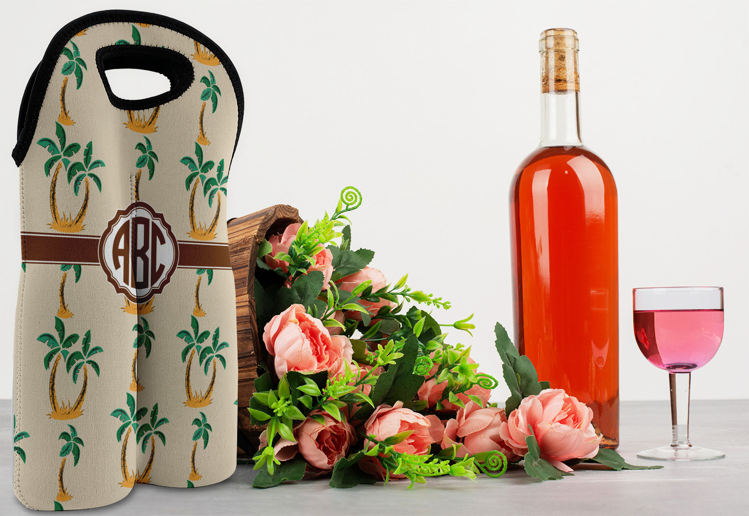 These tote bags are insulated to keep the bottles cold and have a stitched separation down the middle and double handles to keep the two bottles safe and secure during travels.