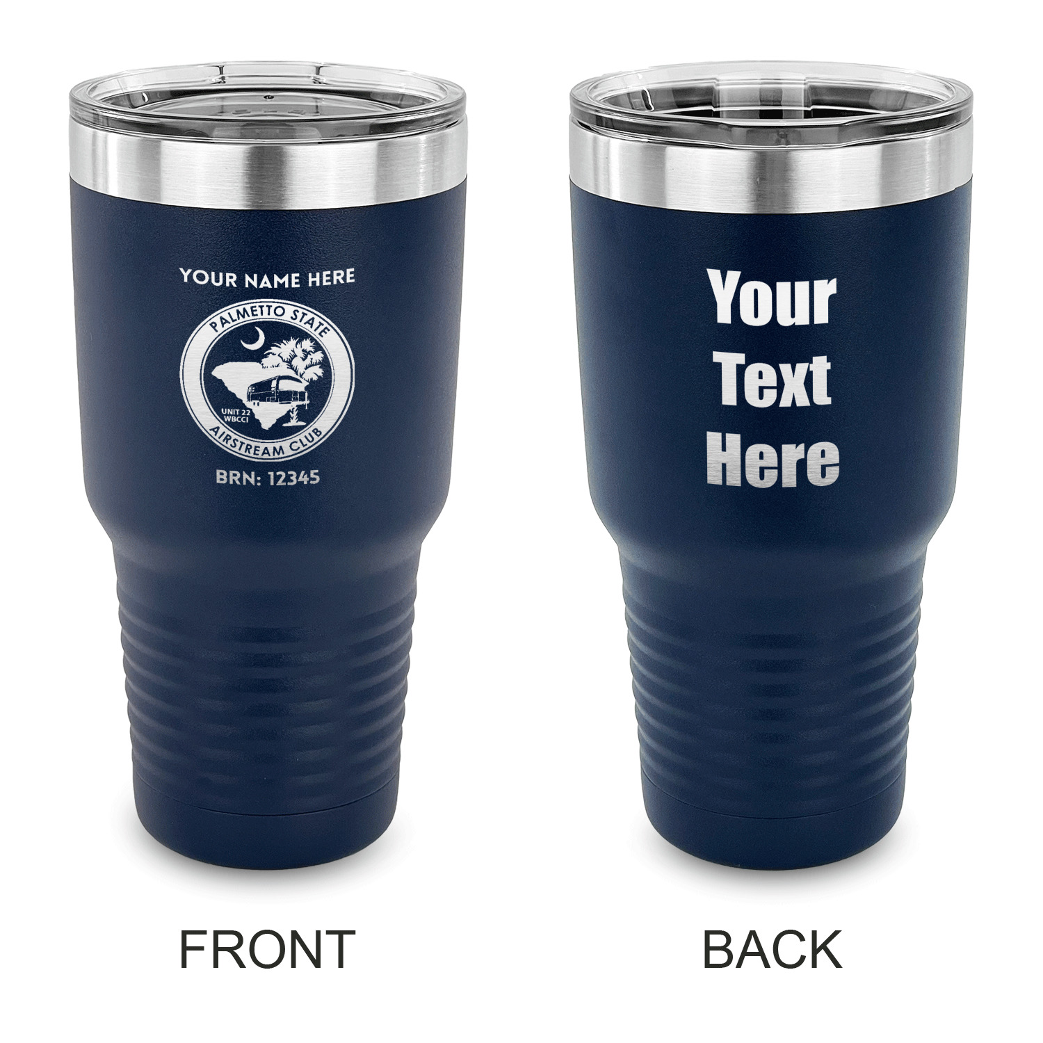 With the 5 colors - Black, Navy, Red, Pink and Coral, you are sure to find a cup to fit your personality. You can chose to engrave on the front or the front and back of the cup. Use our design studio to design your own cup and we laser engrave it for you.