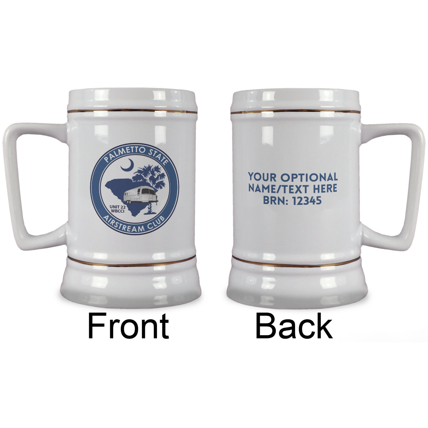 We don't have minimum order quantities on these beer steins. Each beer stein can be customized and personalized in full color on the front and the back. And each stein can be customized for each person in your group.