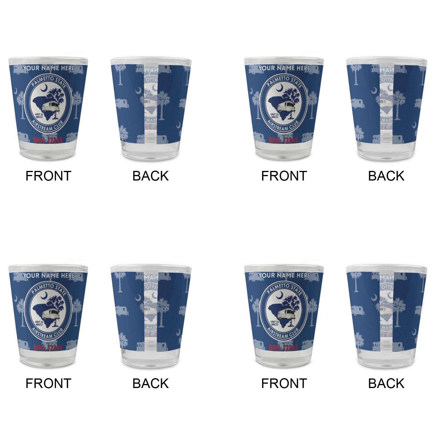 Made with frosted glass, these shot glasses are printed in full color with the design of your choice. They are a standard 1.5oz shot glass and are 2.4" tall. The print is wrapped around the shot glass in a full wrap and boldly displays your customization.