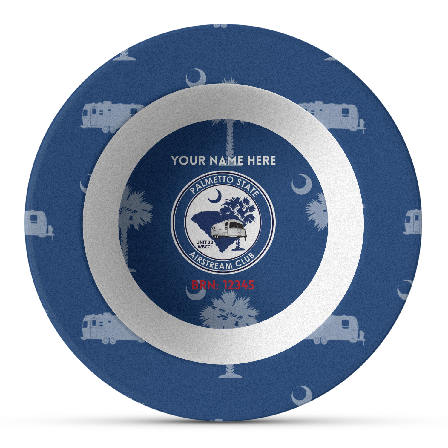 Made from a composite, thermo-set, polymer plastic, these dinner bowls have the versatility, durability, and weight of a melamine bowl without any of the downsides of melamine. Unlike melamine dinnerware, these bowls can withstand high heat. These custom plastic bowls can even handle temperatures of up to 250 degrees Fahrenheit, for up to 60 minutes. The pieces of our plastic dinner set are never made with harmful chemicals, such as BPAs, formaldehyde, DEHPs. We display your personalization on the base of this bowl's interior, while the bowl itself has an 8.75" diameter and is 1.75" tall.